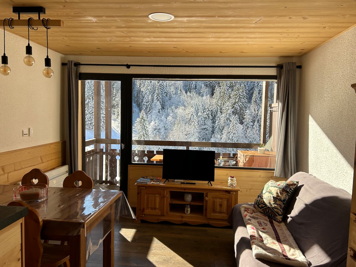 Voll ausgestattetes Studio im Praz de Lys. Sie verfügt über ein Schlafsofa und ein Klappbett für eine dritte Person (Kind). Sie können den großen, sehr ruhigen Balkon nutzen, um den Blick auf die nahe gelegenen Berge zu bewundern. Die Wohnung befindet sich in der Nähe von Geschäften (Restaurants, Geschäfte, ESF...) und dem Tourismusbüro, das Sie über die vielen angebotenen Aktivitäten (Wandern, Radfahren... Sommer und Skigebiet im Winter) beraten kann. Reinigung vor der Abreise