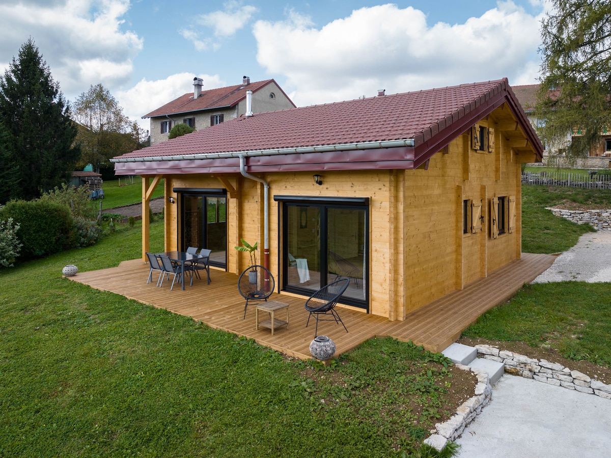 Haustiere nicht erlaubt. Heizung nicht inbegriffen. Neues Chalet im Regionalpark Haut Jura, zwischen Seen und Bergen. Ruhig auf einem privaten Grundstück von 1004 m2, nicht eingezäunt. Ruhe und Erholung in einer grünen Umgebung, 800 m vom Étival-See entfernt (Baden, Wandern und Angeln). Im Winter können Sie die Freuden des Skilanglaufs, Schneeschuhwanderns und Schlittenhundesports in Prénovel (8 km), des Abfahrtslaufs in Morbier (25 km) oder in Les Rousses (35 km) genießen. unterkunft mit 3 Sternen