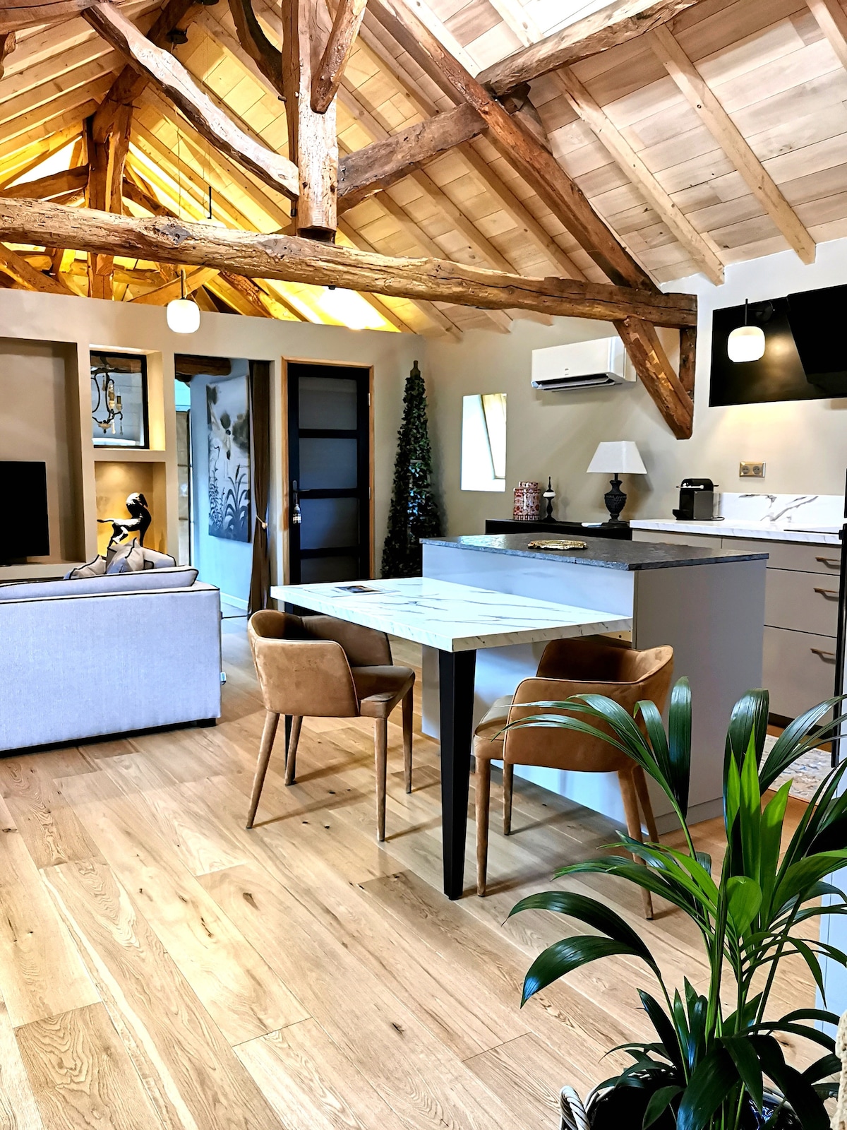 Unsere Maisonettewohnung liegt ideal an der Kreuzung der Departements Lot, Corrèze und Dordogne und ist perfekt, um sich in Ruhe zu entspannen und gleichzeitig mehrere Themen zu genießen: Tourismus, Gastronomie oder Sport, durch eine Vielzahl von bemerkenswerten Sehenswürdigkeiten rund um Sarlat, Rocamadour oder Saint-Cyr Lapopie... und viele andere. Mit dem Wunsch, verschiedenen Möbeln ein zweites Leben zu geben, wurde diese Wohnung komplett renoviert und für Ihr "Cocooning" ausgestattet.