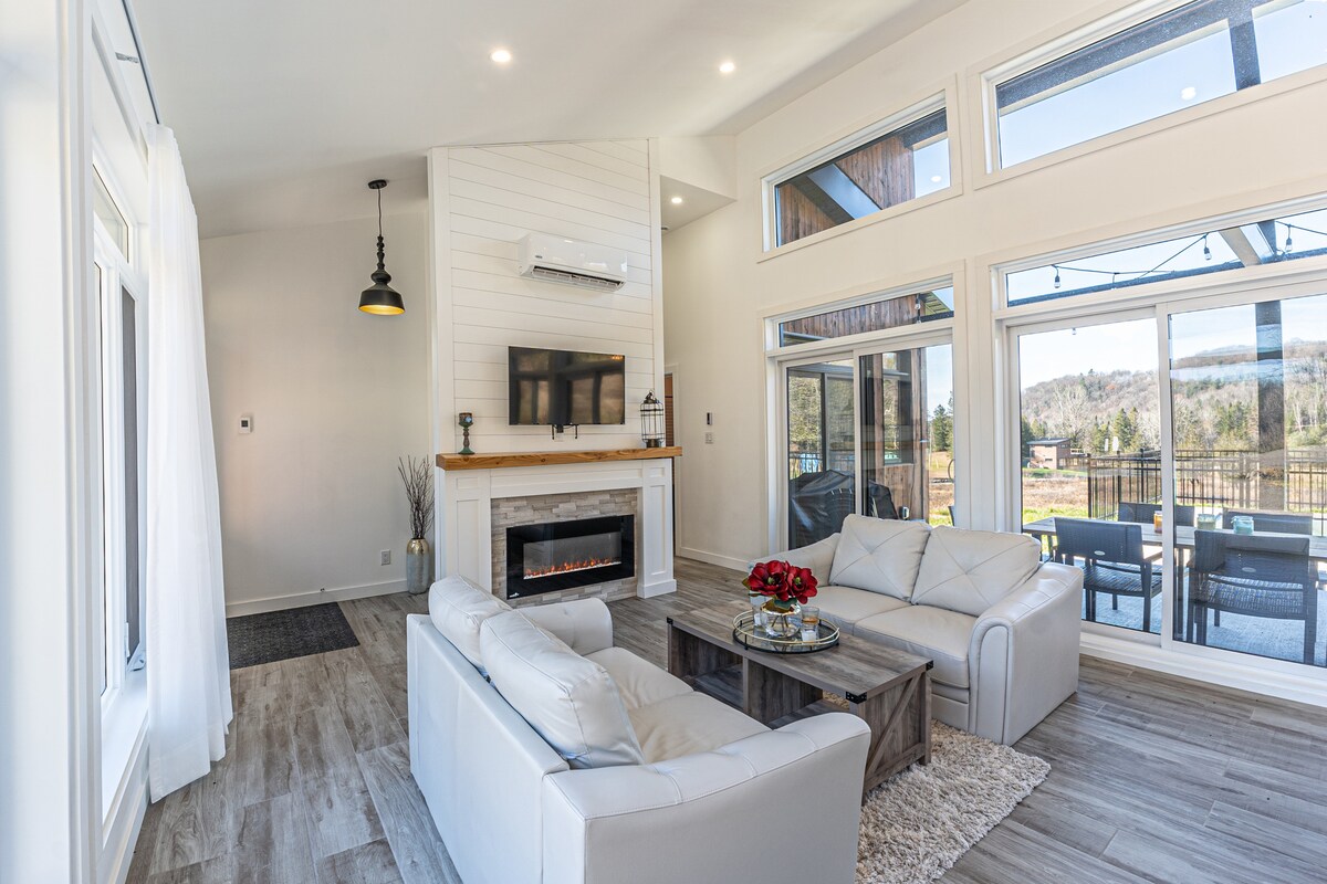 Chalet spa & lac, borne recharge, 15min St-Sauveur