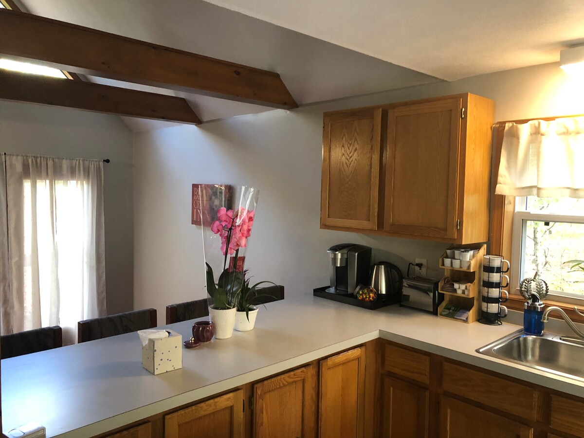 Ein atemberaubendes Chalet in idealer Lage in den Pocono-Bergen. Dein Ziel für einen Wochenendausflug oder einen längeren Aufenthalt das ganze Jahr über! Draußen kann man eine natürliche Umgebung in einem schönen 1 Hektar großen privaten Waldgrundstück, Whirlpool, zwei Feuerstellen, eine Terrasse für Morgenkaffee oder ein leckeres BBQ genießen. Unser Zuhause bietet eine ruhige Innenatmosphäre und das Zuhause liegt günstig in der Nähe aller saisonalen Aktivitäten der Pocono Mountains. Egal, ob du dich entspannen oder erholen möchtest, unser Zuhause bietet den perfekten Rückzugsort.
