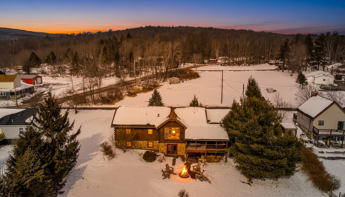 Ein atemberaubendes Chalet in idealer Lage in den Pocono-Bergen. Dein Ziel für einen Wochenendausflug oder einen längeren Aufenthalt das ganze Jahr über! Draußen kann man eine natürliche Umgebung in einem schönen 1 Hektar großen privaten Waldgrundstück, Whirlpool, zwei Feuerstellen, eine Terrasse für Morgenkaffee oder ein leckeres BBQ genießen. Unser Zuhause bietet eine ruhige Innenatmosphäre und das Zuhause liegt günstig in der Nähe aller saisonalen Aktivitäten der Pocono Mountains. Egal, ob du dich entspannen oder erholen möchtest, unser Zuhause bietet den perfekten Rückzugsort.