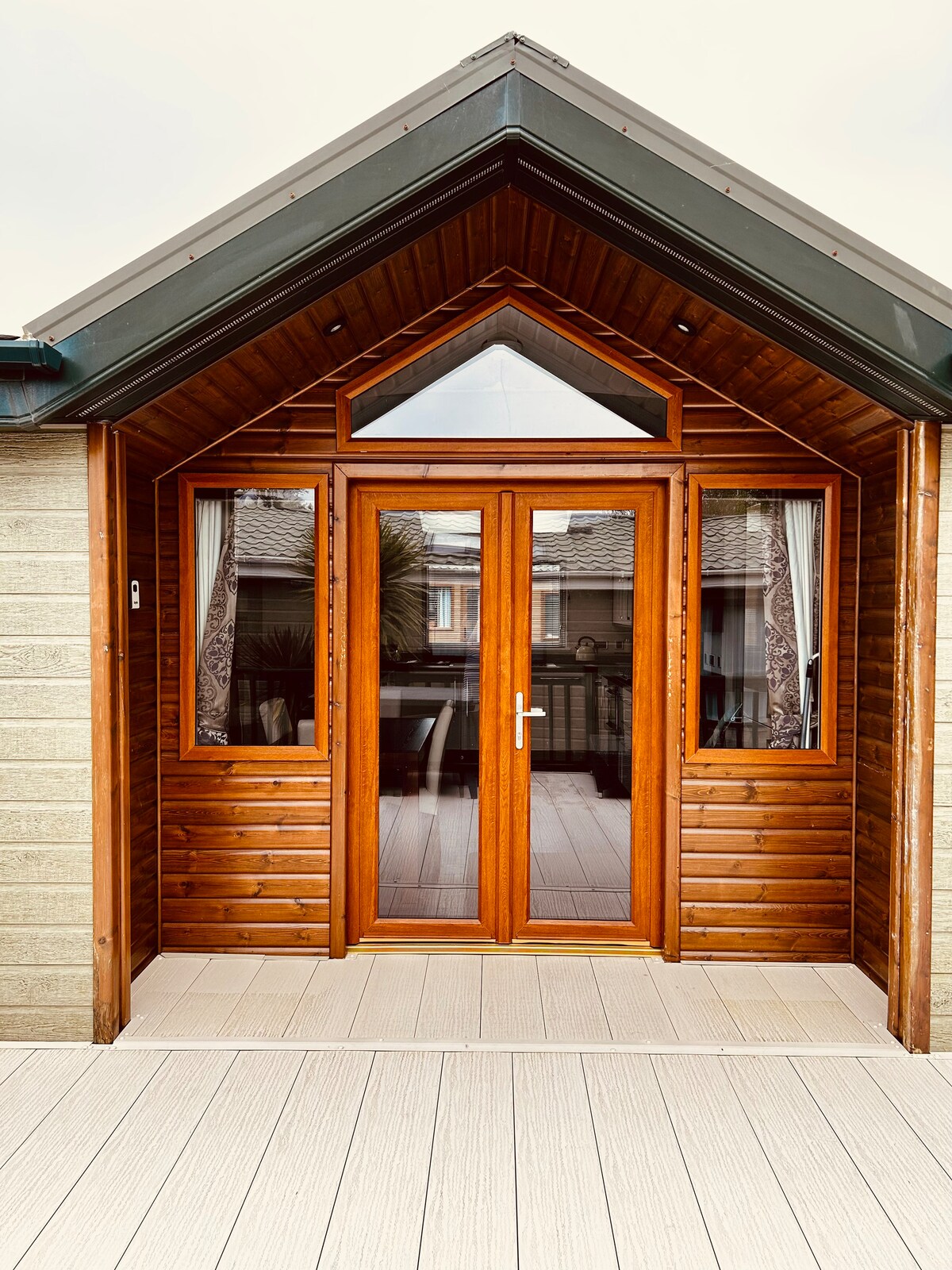 Luxuriöses Ferienhaus in der Ladram Bay mit Meerblick, in der Nähe aller Annehmlichkeiten des Parks in ruhiger Lage. Die Lodge verfügt über 2 private Parkplätze (+ zusätzliche Pässe), einen kleinen Gartenbereich und die spektakulärste Aussicht, die vom Balkon rund um die Lodge genossen werden kann. Im Inneren findest du ein modernes Interieur vor; zwei Schlafzimmer, eines mit einem eigenen WC, Waschbecken und einer Dusche, dann ein separates Familienbad, eine voll ausgestattete Küche, einen Essbereich und eine Lounge, die auf einen großen Terrassenbereich führt.
