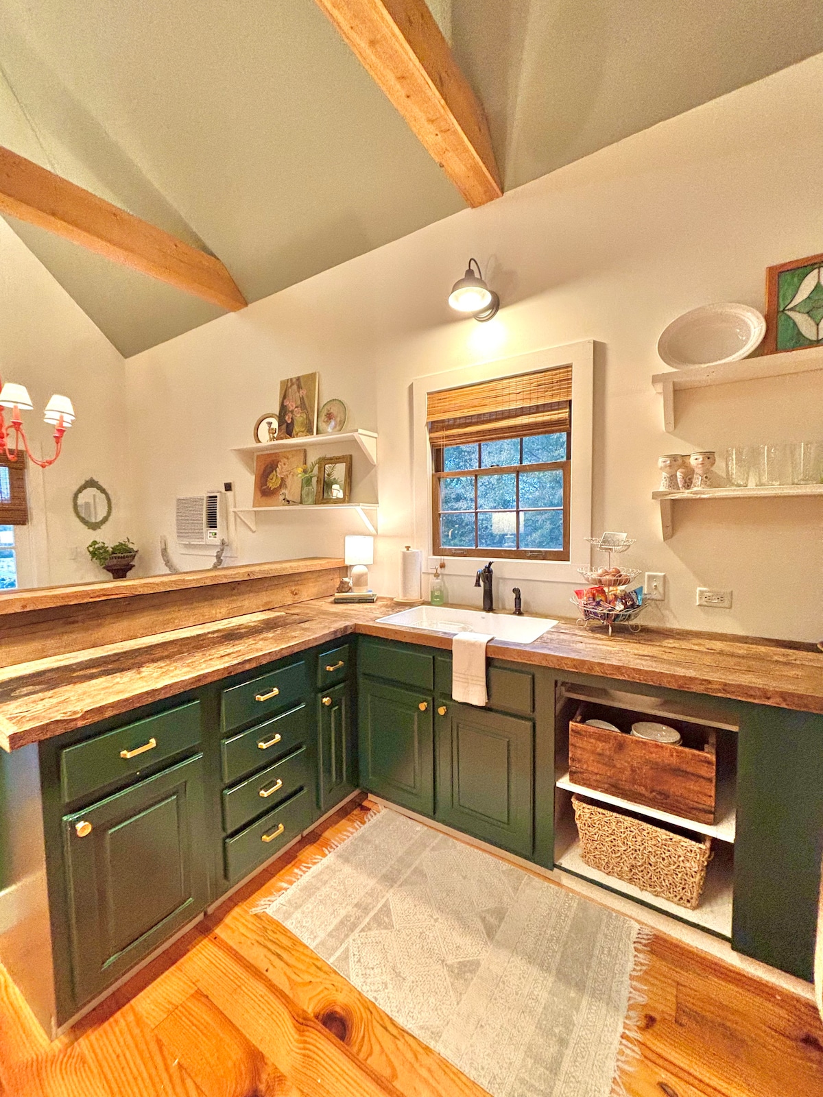 Gehe zum Square (7/10 Meilen) für Essen, Musik, Bücher, Geschäfte; besuche Faulkners Haus (3 Türen weiter unten); nimm den bewaldeten Weg nach Ole Miss. . . alles von deiner privaten Scheune-Hütte mit Veranda. Queen-Size-Bett und Einzelbett im Loft, Sofa lang genug, um unten zu schlafen. Das Loft bietet auch genügend Platz für ein aufblasbares Bett. Kleine Küche mit Waschbecken, Kühlschrank, Herd, Backofen, Toaster, Mikrowelle und Kaffeemaschine. Gläser, Geschirr, minimales Besteck und Kochutensilien werden bereitgestellt. Kontinentales Frühstück wird ebenfalls angeboten.
