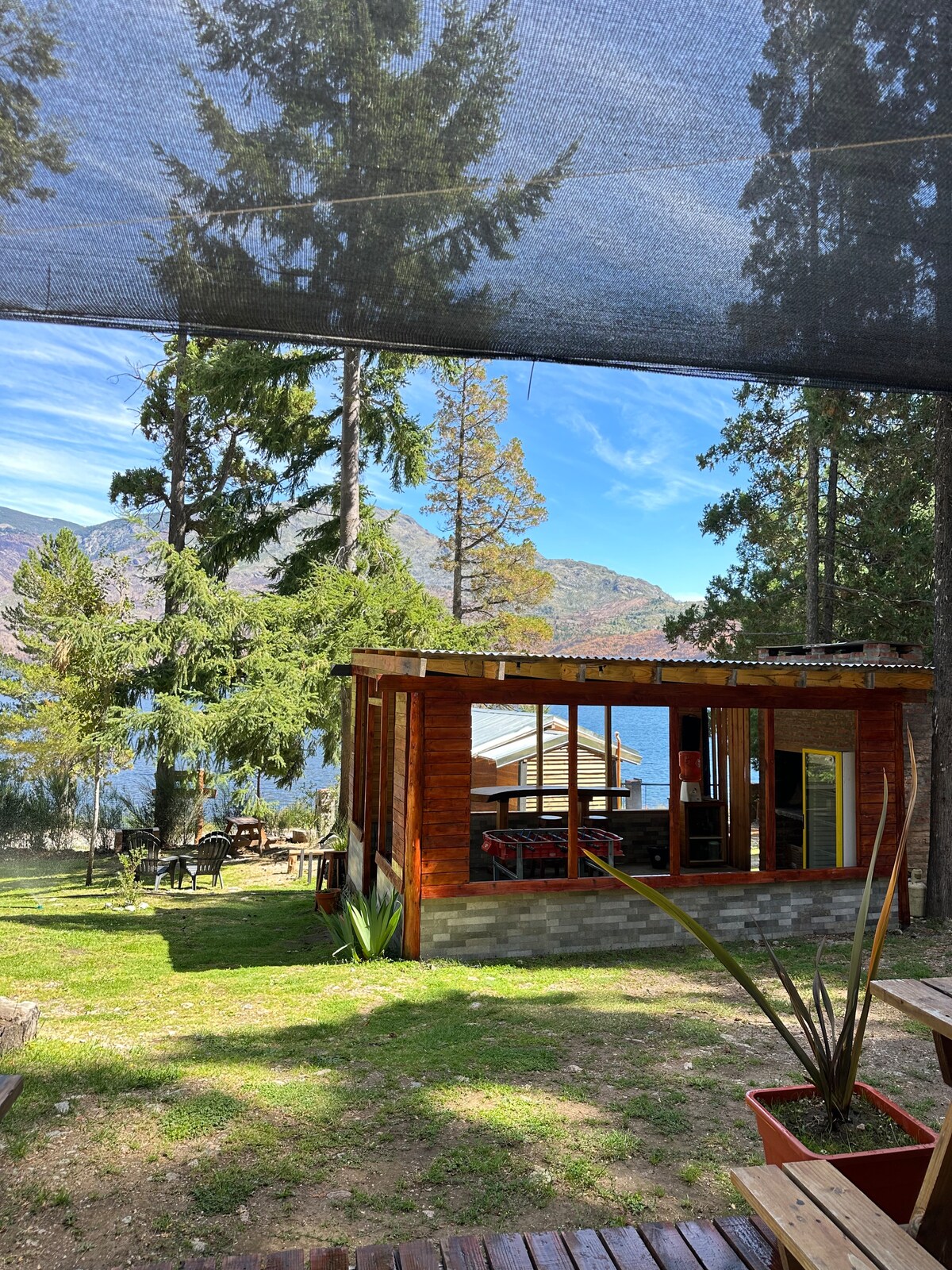 Die Hütte bietet einen Panoramablick auf den Hügel Currumahuida, den Hügel Morrudo und den Cuevas Hill, die 3 Gipfel und die Bergkette. In einem Wohnviertel mit wenig Autokreislauf kannst du das wahre Leben eines Bergdorfes erleben, nur eine 10-minütige Fahrt vom Dorfzentrum entfernt. Wir befinden uns 100 Meter vom Nationalpark, 10 Gehminuten vom „La Playita“ vom Puelo-See, 15 Gehminuten vom Pier und dem Blue River entfernt.