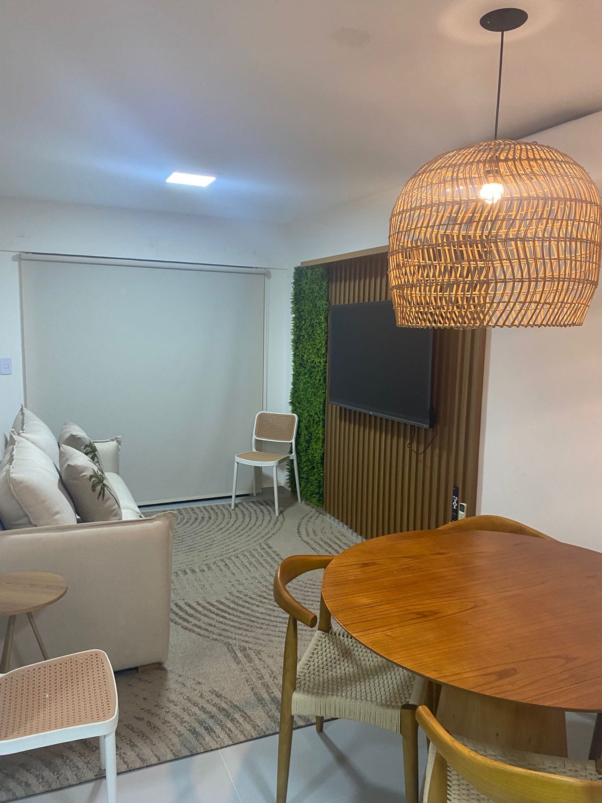 Apenas 5 min do centro. Condomínio fechado com portaria 24h e estacionamento gratuito (até 2 carros). Apartamento amplo, dispõe de 2 suítes c/ ar-cond., roupeiro, cortinas blackout e mesa de trabalho. Camas para até 6 pessoas. Cozinha compacta completa c/ geladeira, fogão cooktop, micro-ondas, utensílios e eletrodomésticos. 2 banheiros c/ chuveiro elétrico e secador de cabelo. Sala c/ Smart TV e Wi-Fi. Oferecemos toalhas, roupas de cama e cobertores. Ambiente ideal para famílias ou grupos!