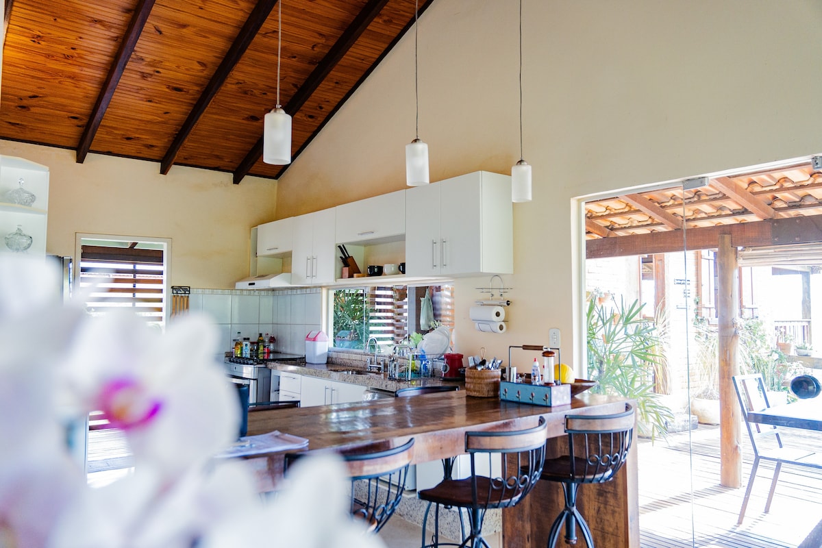Casa espetacular, com decoração incrível e muito conforto , oferece 2 suítes com banheiras de hidromassagem e varandas , além de uma cozinha , sala de Tv/ estar e lavabo. Oferecemos enxoval completo, utensílios domésticos e de cozinha . O café da manhã será cobrado à parte e deve ser combinado com antecedência. A Casa está localizada num residencial a exatos 2.5 km do centro histórico , o que equivale a 7 minutos de carro . Temos uma vista incrível e estamos numa região de muita natureza.