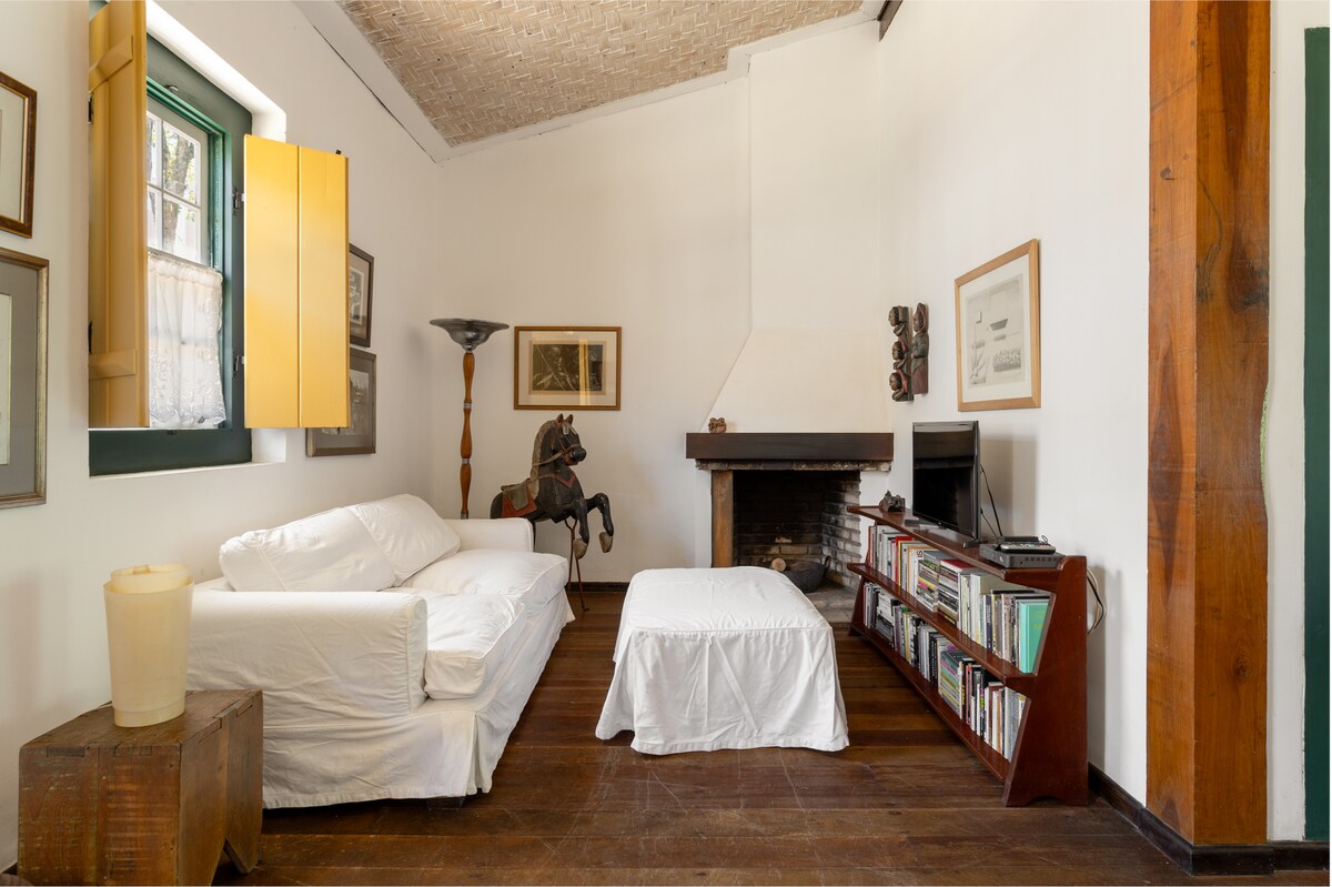 🌿Casa Colonial ao pé da Serra de São José 1800m (5 min de carro) do Centro Ideal para casais e pequenas famílias. 2 quartos aconchegantes de casal (1 suíte) Banheiro social Cozinha equipada com fogão industrial em ilha, Fogão a lenha Lareira Smart TV Wi-Fi rápido Máquina de lavar e secadora Churrasqueira fogo de chão Chuveirão externo Riacho particular Estacionamento privativo Hortinha orgânica Venha viver a verdadeira Tiradentes na Casa do Riacho. Superhost com 5 estrelas consistentes.