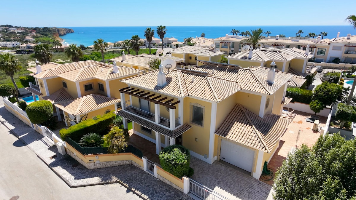 Olá-Familien! Das schöne Vivenda Sol Nascente ist ideal für dich! Swimmingpool & privater Garten, Klimaanlage (Klimaanlage), Grill. An einem ruhigen Ort, mitten in der Algarve, neben einem Golfplatz, mit herrlichem Strandblick auf die Lagos Ocean Bay und 7 Gehminuten vom Strand/den Restaurants entfernt. - Klimaanlage (kalt/warm, 5 Schlafzimmer & Wohnzimmer) - Privater Pool (Heizung: gegen Aufpreis) -Barbecue - Parkplatz - Safe. -WLAN. -HDTV Willkommen im Strandparadies Meia Praia & der schönen Stadt Lagos!🙂☀️