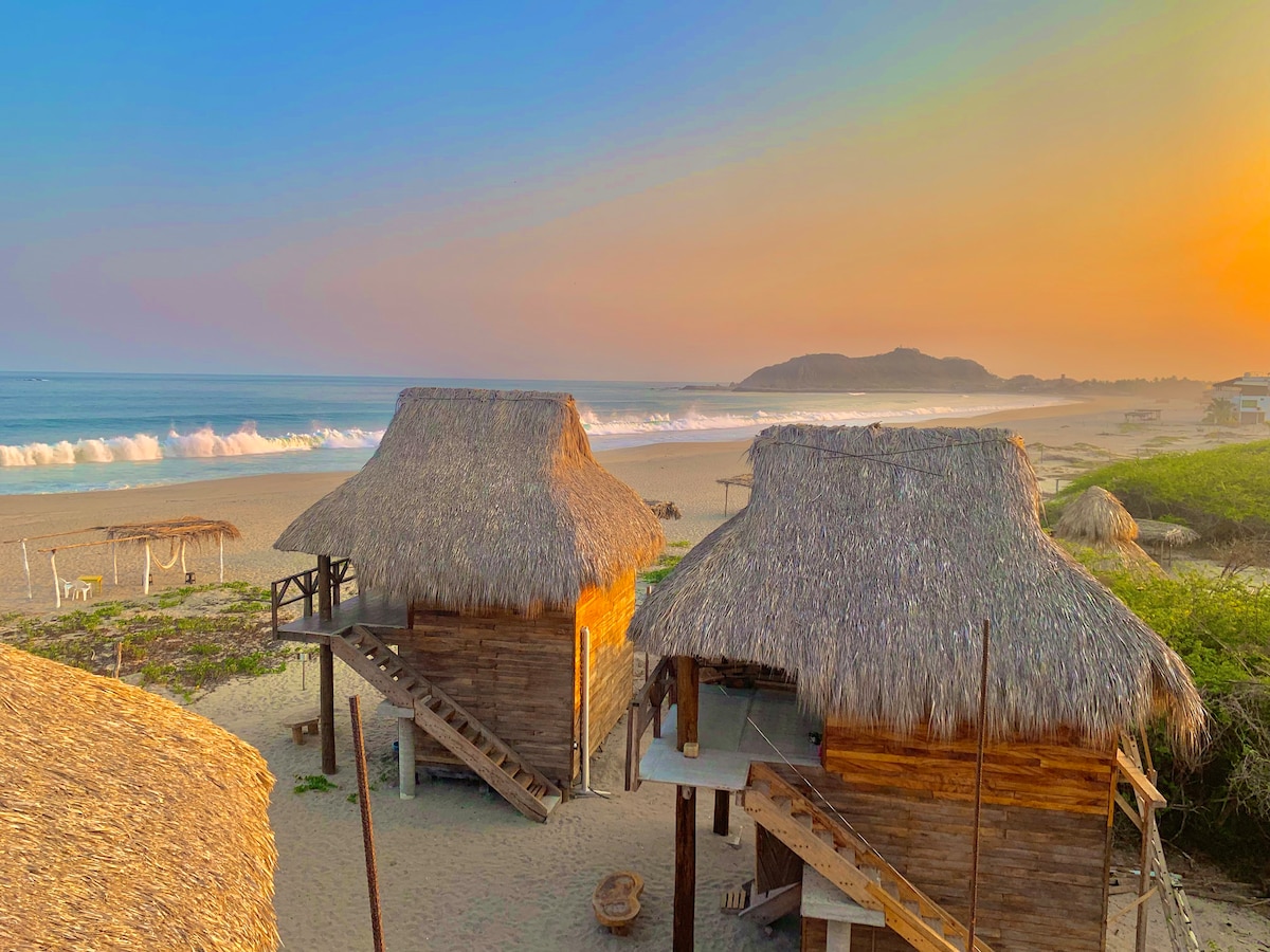 Stay in a cozy private cabaña at Arte Arena, right on the untouched beach of Chacahua. Enjoy ocean views from your private garden with private beach access, a queen bed, private bathroom, and natural outdoor shower. From November to March, watch both sunrise and sunset over the sea. Perfect for nature lovers and deep relaxation.