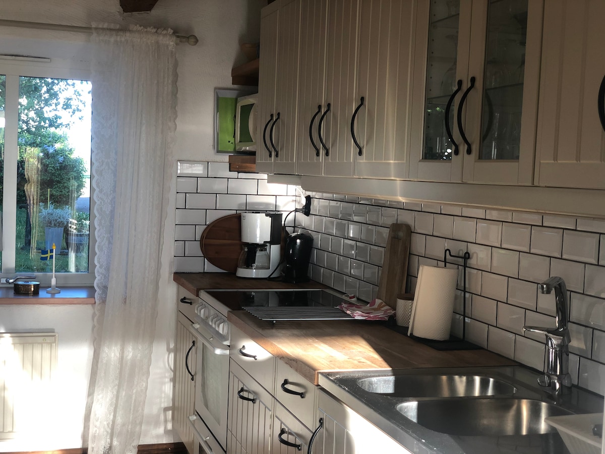 Dieses Haus befindet sich in der Nähe der E6 mit 8 km vom Zentrum von Laholm und ca. 20 km von Halmstad entfernt. Du, die hier wohnen, wirst den Raum, die Umgebung und die Atmosphäre des alten Hauses aus dem Jahr 1870 zu schätzen wissen. Dieses Haus eignet sich für Paare und Familien (mit Kindern). 64 m ². Voll ausgestattete Küche, Holzofen, Dusche & Toilette, private Terrasse mit kleinem Garten und Grill. Auf dem Grundstück gibt es zwei Mini-Schweine, Katzen und zwei Hunde, die es mögen, wenn wir Gäste haben.