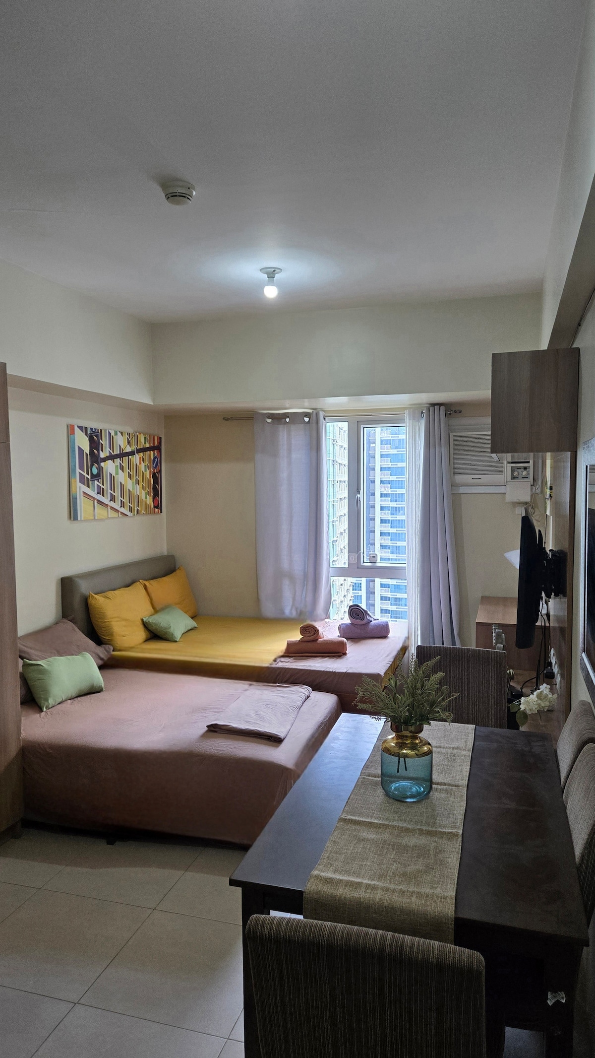 Erschwingliche und komfortable Unterkunft in erstklassiger Lage im Stadtzentrum von Cebu. Dieses Studio verfügt über zwei Doppelbetten, die Platz für maximal 3 Erwachsene oder 4 Personen mit Kindern unter 10 Jahren bieten. Bitte beachte dies bei der Buchung. 📍Lage: 7. Stock der Mivesa Garden Residences, Salinas Drive, Lahug, Cebu City. Egal, ob du geschäftlich oder privat in der Stadt bist, unsere voll möblierte Wohnung ist so konzipiert, dass sie Komfort mit allem bietet, was du brauchst.
