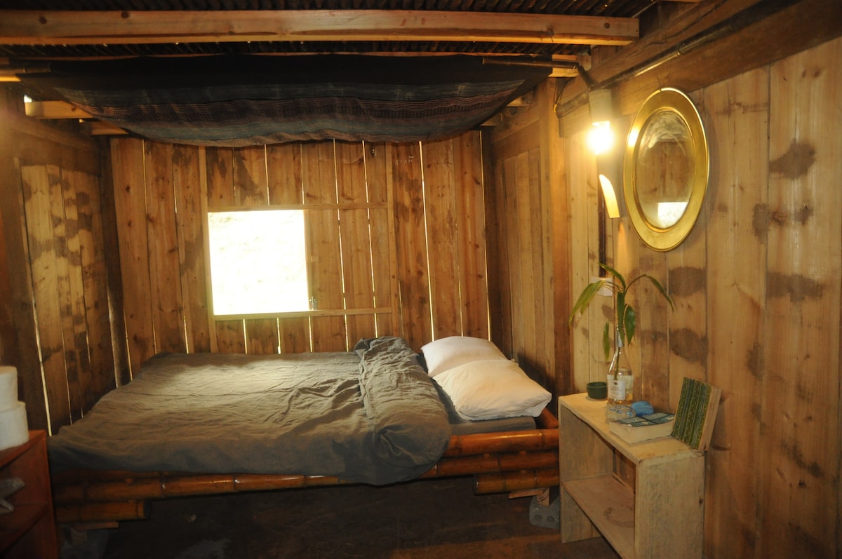 Experience the true spirit of Sapa, just 10km from the town center — peaceful and surrounded by mountains. * Separate wooden chalet for up to 3 guests * Large glass windows with mountain & rice terrace views * Fully equipped kitchen (fridge & cooking utensils) * Fireplace, heater & heated mattress (cozy in winter) * Spacious modern bathroom with hot water & heating * Outdoor garden with panoramic views