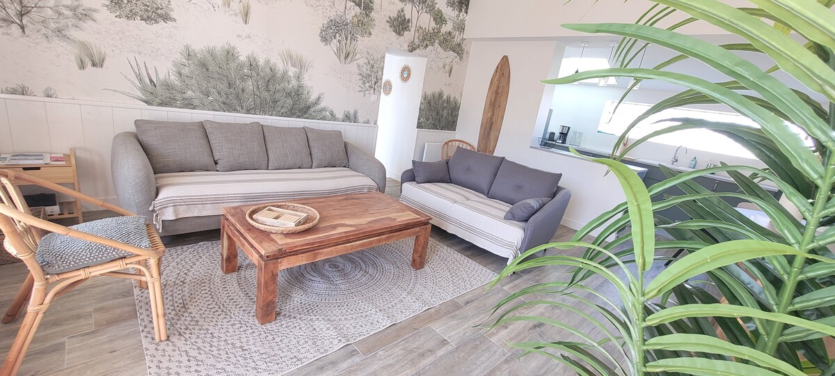 Une décoration tendance, du mobilier douillet et actuel qui aspire à la détente avec une magnifique plage de sable fin à proximité, c'est la promesse de la Bohème. Cette location se compose au rez de chaussée de : un séjour avec grande cuisine , deux chambres doubles, une salle d'eau et un garage / buanderie. A l'étage, une 3ème chambre avec lits superposés et une salle d'eau. WIFI. Un grand jardin / terrasse de 100m2. Linge et ménage de départ non compris. Les animaux ne sont pas admis.