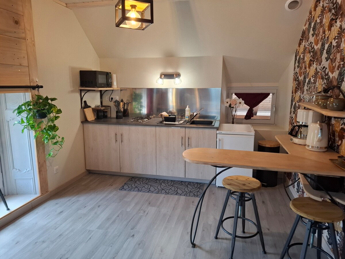 Bienvenue dans votre cocon sous la charpente, un loft chaleureux niché au dernier étage d’une maison savoyarde. Ici : charpentes apparentes, velux baignés de lumière et vue directe sur les arbres du jardin. Le loft est pourvu d’un lit double, que l’on peut séparer du reste de la pièce grâce à un paravent. Un petit sas après les escaliers relis la pièce à vivre, une chambre double avec lit king size, et toilette séparée, Cuisine équipée et salle de bain, offrant une vue sur le ciel.