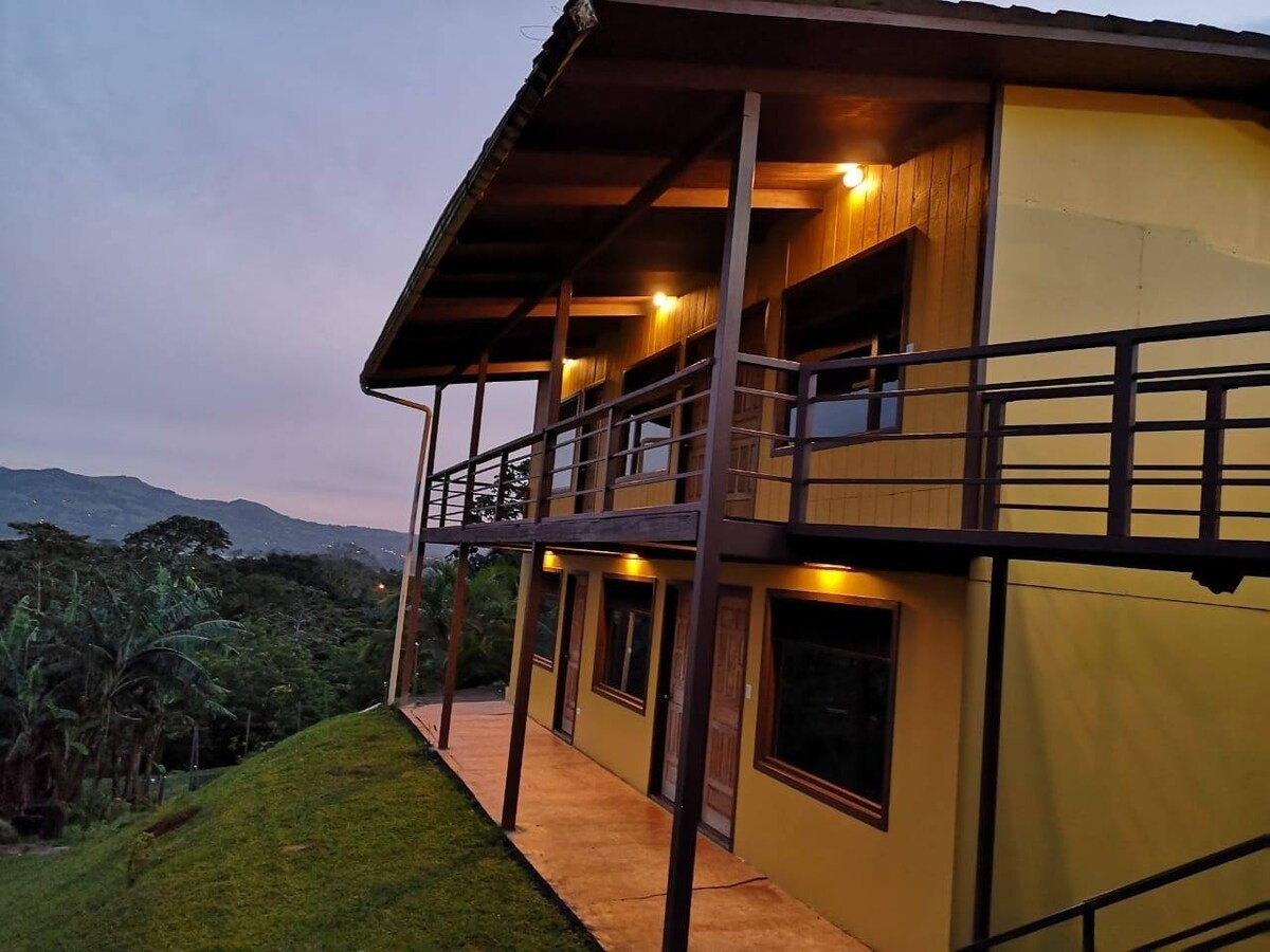 Eine ruhige, moderne Unterkunft, umgeben von Natur und mit Blick auf den Vulkan, können Sie als Paar oder einfach als Ort genießen, um sich ein wenig vom Alltag zu trennen, es ist auch geeignet, damit Sie in Ruhe telearbeiten können. Genieße einen privilegierten Blick auf den Vulkan Arenal vom Zimmer aus und einen Whirlpool mit Hydromassage auf der Terrasse. Wenn du Glück hast, kannst du den Faultier sehen. Nur 400 Meter vom Zentrum von La Fortuna entfernt, in der Nähe von Thermalbädern, Touren und Restaurants.