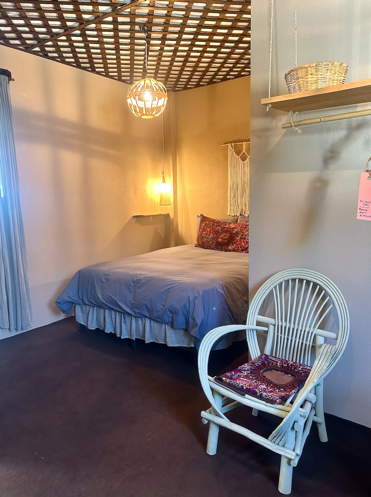 Posada Bosque Encantado is a peaceful garden guesthouse in central San Marcos La Laguna, rooted in Mayan tradition. Built with adobe, stone, and local wood, the space reflects ancestral building practices with modern comfort. Steps from the lake, yoga, cafés, and the nature reserve, it offers a quiet, authentic stay immersed in local culture and nature.