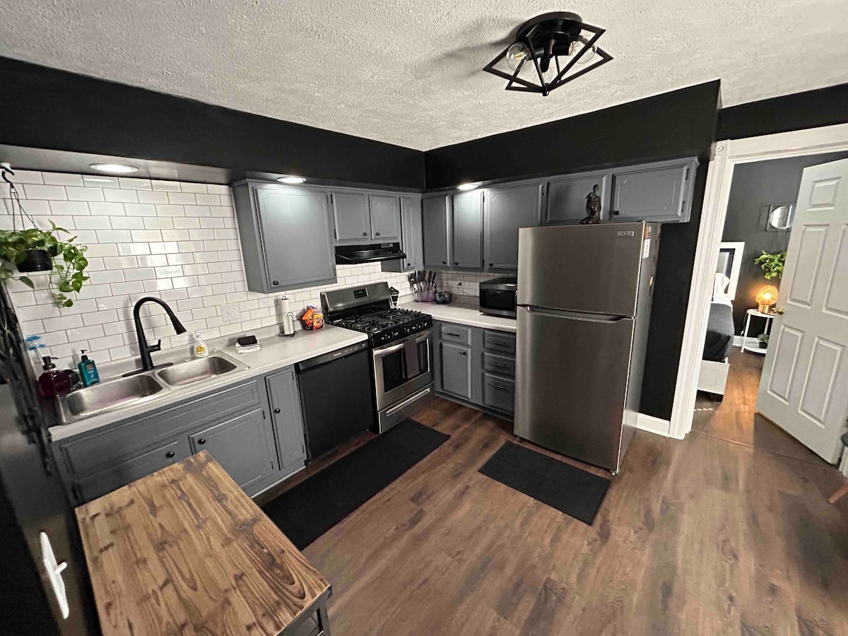 Entdecken Sie Black Beauty – einen einzigartigen Rückzugsort, der für Entspannung und Ruhe konzipiert wurde. Erleben Sie unsere einladende 2-Zimmer-Wohnung mit 1 Badezimmer, einer voll ausgestatteten Küche und einem komfortablen Wohnzimmer. Genieße absolute Privatsphäre mit deinem eigenen schlüssellosen Zugang. Wir freuen uns schon sehr darauf, dich bei uns willkommen zu heißen🖤. *Bequemes Aufladen von Elektrofahrzeugen mit einem NEMA 14-50-Stecker (40 Ampere)* Wohnung 2