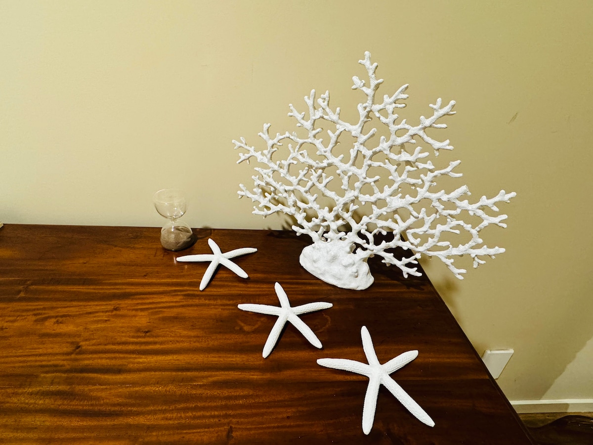 Nimm die ganze erweiterte Familie mit in diese tolle Unterkunft mit viel Platz für Spaß und Unterhaltung. Diese Unterkunft ist für 10 Personen eingerichtet und groß genug, um 2 oder mehr Familien unterzubringen. Das Hotel liegt in einem ruhigen ländlichen Hof, nur 5 Fahrminuten von der Stadt und dem 90 Meilen langen, von Rettungsschwimmern bewachten Strand entfernt. 1 Hektar Grundstück mit viel Platz für das Boot und die Kinder! Der Unterhaltungsbereich im Freien mit eingebautem Kamin und einem Salzwasserpool sorgt während der Feiertage für viel Unterhaltung im Freien.