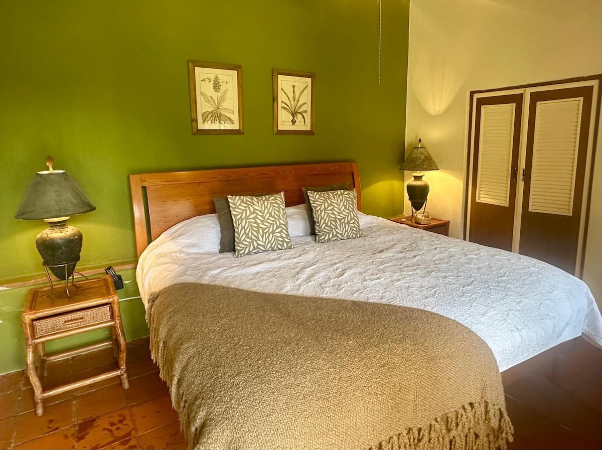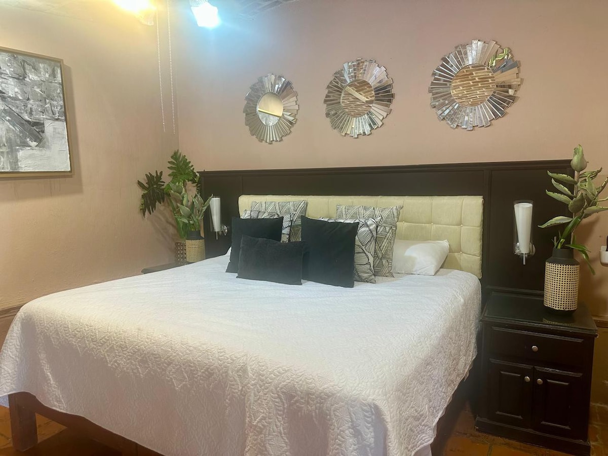 Komplett renoviertes, modernes Haus in Chapala Central. Ganzes Haus mit schönem Garten! Tolle Lage und dennoch ruhig. Der Raum verfügt über viele Extras wie ein Bidet... sauberes Wasser aus dem Wasserhahn, viel Wasserdruck für Ihre Dusche und einen 30-Gallonen-Warmwasserbereiter. Nicht so üblich in Mexiko. Die Bettwäsche und Handtücher sind von hoher Qualität. Dies ist ein schöner Premium-Raum, sehr komfortabel und praktisch. Wir haben entweder ein Kingsize-Bett im Obergeschoss oder zwei Einzelbetten. Unten haben Sie ein Luftbett