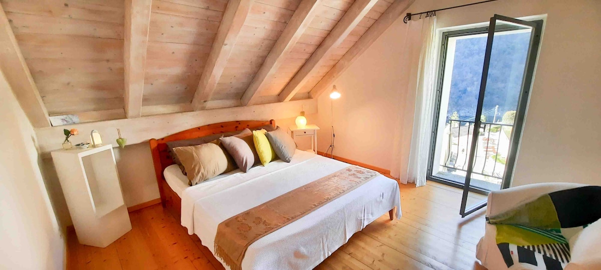 Das Apartment erstreckt sich über 2 Etagen und besteht aus 3 Schlafzimmern, einem Wohnzimmer, einer Küche und 2 Bädern. Es hat einen schönen Garten mit Bäumen, wo Sie zu Mittag essen und den Grill nutzen können Auf der einen Seite grenzt das Anwesen an den Wald und auch von der Gegend aus entspannen, wo es Sofas, eine finnische Sauna und einen Whirlpool gibt, können Sie einen unvergesslichen Blick auf den See und die umliegenden Berge genießen Schöne Sonnenuntergänge und Lichter der Dörfer am See Alles wird das ganze Jahr über exklusiv genutzt und betrieben
