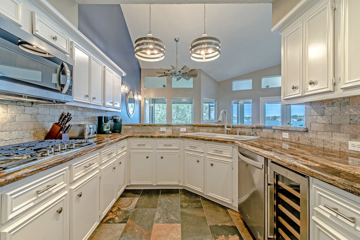 Relaxing & entertaining lakefront beauty! Boat and Waverunner available to rent. Fish, SUP, swim, bonfires & BBQ in a peaceful, private channel. 3000 sq ft, single story, open concept home with amazing lake views. Newly Renovated with ample amenities- Swim Safely right off the dock, kids love the bunk & game room in the garage with pickleball, foosball, ping pong, etc! Outdoor kitchen, kayaks, SUP's & life jackets are for your use!