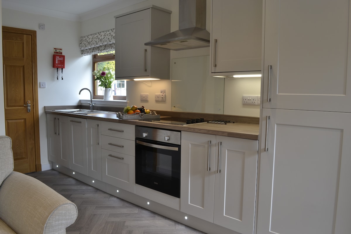 Apple tree cottage has recently been refurbished with modern interiors and super fast broadband. A self catering cottage with its own small garden and driveway, set in bucolic countryside. Able to accommodate 3 guests (3rd guest with an additional charge) with a unique 'reading nook' which can be made into a small single bed for a young child. Babies up to 2 years old are welcome (free of charge) with a travel cot and high chair supplied. Alternatively, a sofa bed can be made available.