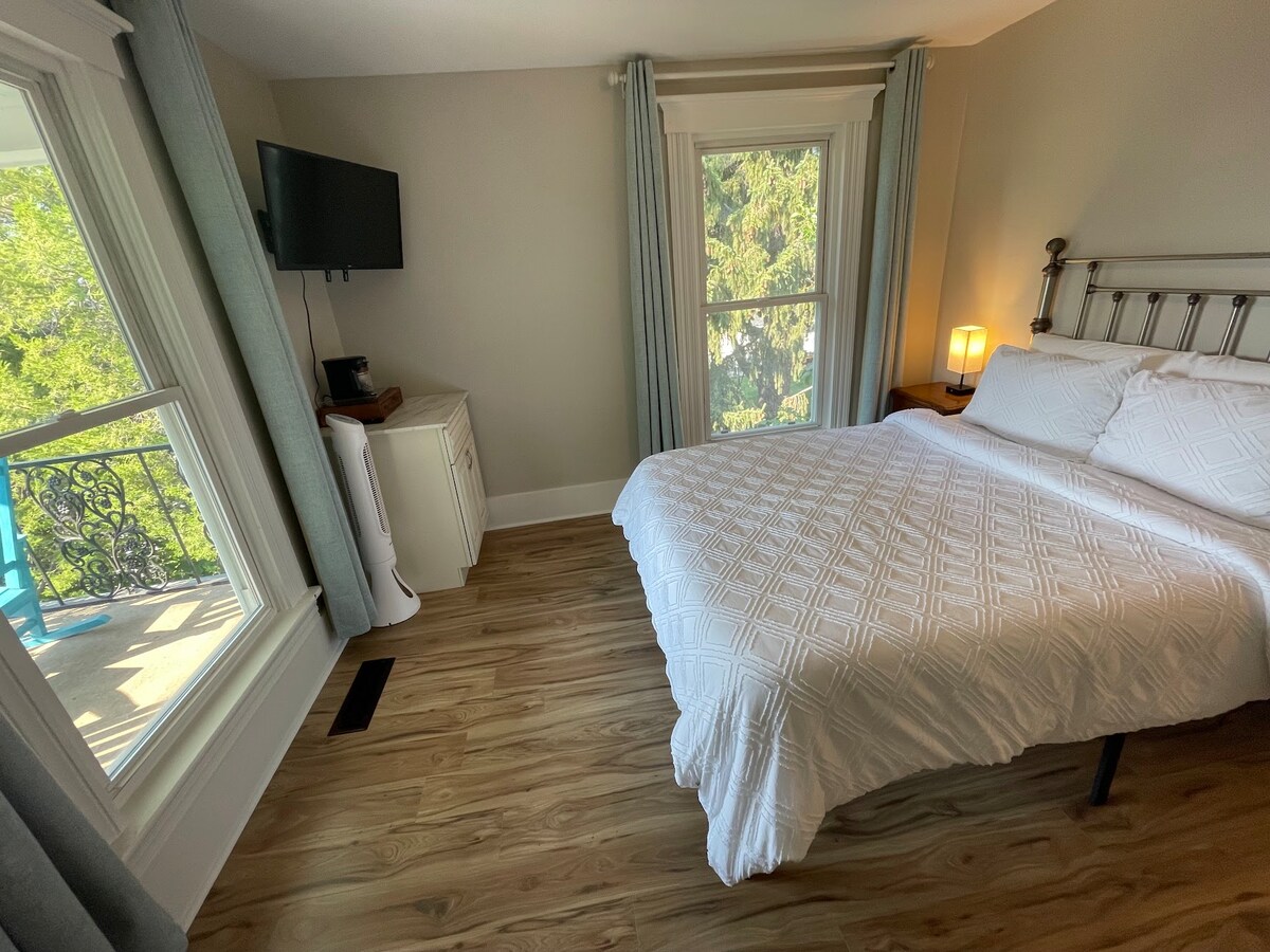 GERADE RENOVIERTE ZIMMER! Alle unsere Zimmer in unserem Quant Inn befinden sich mitten im Herzen von Leavenworth. Wenn du die Treppe hinuntergehst, befindest du dich mitten im Herzen der Dorfläden, Restaurants und Aktivitäten. Die Zimmer verfügen über einen gemeinsamen Balkon auf beiden Seiten unseres Gebäudes mit klassischem Dorfblick auf der einen Seite und schönem Bergblick auf der anderen Seite. Egal, ob du auf der Suche nach einer Unterkunft zum Entspannen oder bereit für ein Abenteuer bist, wir haben den perfekten Ort für dich! Bis bald!