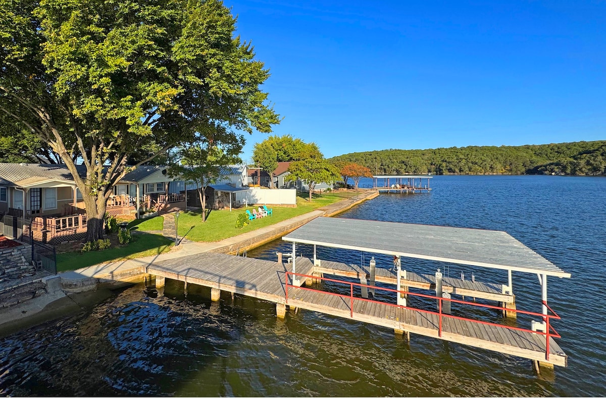 Wunderschön renovierte Unterkunft am See! Das Vista Grande Lake Haus ist der perfekte Rückzugsort, um Zeit mit Freunden und Familie zu verbringen, zu schwimmen, zu angeln, auf dem Paddelboot zu erkunden, zu grillen und sich zu entspannen! Beobachten Sie den Sonnenuntergang mit einem Glas Wein aus dem Meerwall, der Hängematte oder einem der beiden Terrassenbereiche. Das Hotel liegt am Ende einer ruhigen Sackgasse in einer geschlossenen Wohnanlage etwa 15 Minuten vom Granbury Square entfernt.
