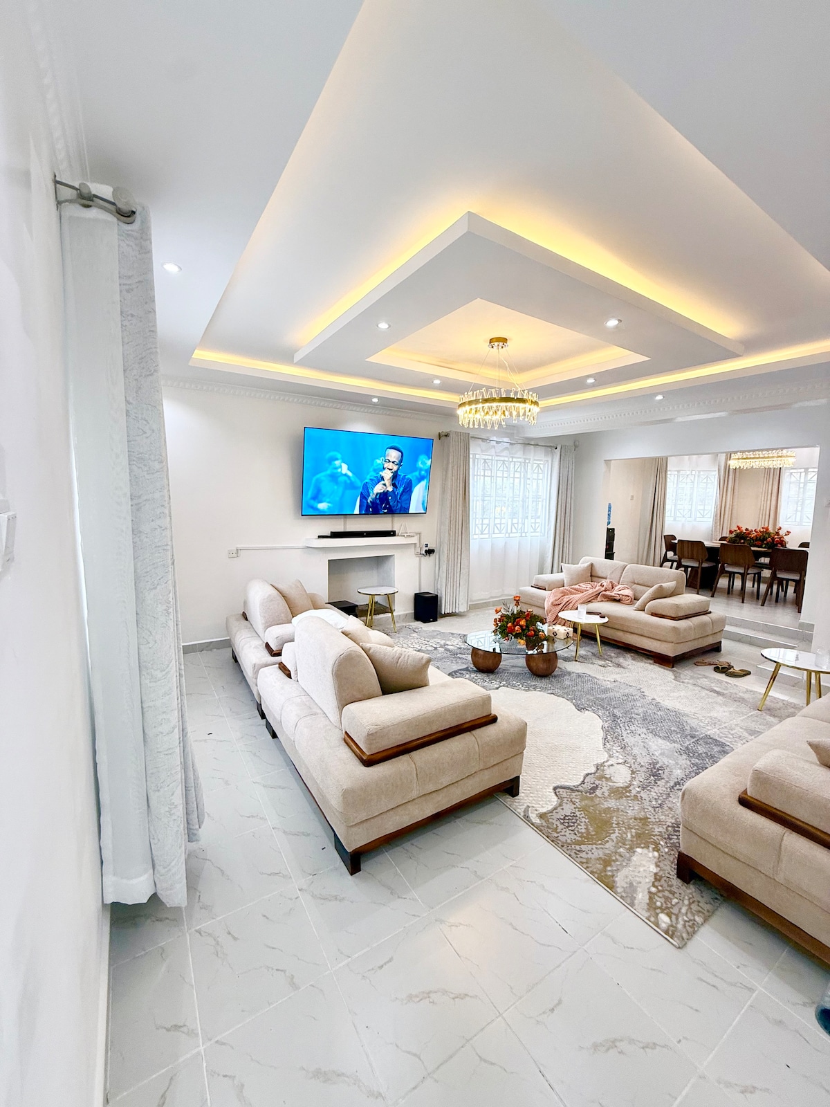 Wake up to birdsong and fresh Naivasha air in this spacious, modern villa tucked in a quiet, secure neighborhood near the lake. Enjoy a bright open‑plan living area with plush sofas, smart TV, elegant dining space, fast Wi‑Fi, fully equipped kitchen, ample parking, and beautiful gardens. Ideal for families, groups, or couples seeking a peaceful yet convenient Naivasha escape.