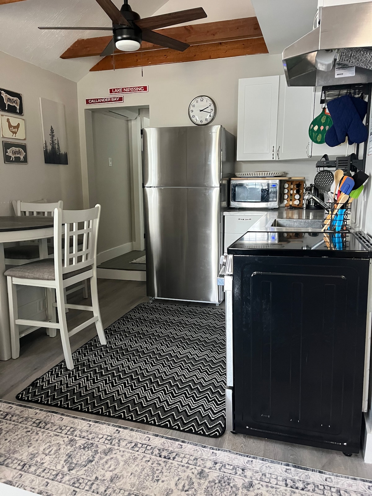Willkommen im Finch Beach Resort, wo unser Ziel darin besteht, gute Zeiten am See zu inspirieren! Lerne Corky kennen, ein sauberes, haustierfreundliches Ferienhaus mit 3 Schlafzimmern direkt am Strand und mit herrlichem Blick auf den Lake Nipissing als Teil eines kleinen Resorts mit 4 Ferienhäusern. Der weiche Sandstrand ist perfekt zum Schwimmen und bietet den besten Blick auf den Sonnenuntergang, den Ontario zu bieten hat. Das Hotel liegt mitten in der Stadt und ist nur 2 Gehminuten von einigen der besten Restaurants und Terrassen der Stadt entfernt.