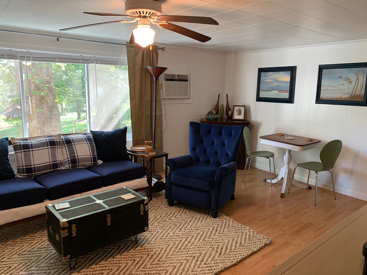 Dieses Ferienhaus am See ist ein perfekter Ort für Flitterwochen, Paare oder eine 4-köpfige Familie. Neu renoviert mit neuen Geräten und Quarz-Arbeitsplatten. Die Küche, das Abendessen und das Wohnzimmer sind alle offen und schaffen eine helle und sonnige Atmosphäre. Dieses Haus am See ist wie kein anderes mit einem privaten, unverbauten Blick auf den See, der zwischen den Bäumen thront. Dies ist der perfekte erholsame Rückzugsort, nach dem du suchst. Es gibt eine Bootsanlegestelle auf dem ruhigen Kanal zum Schwimmen, Bootfahren und Angeln.