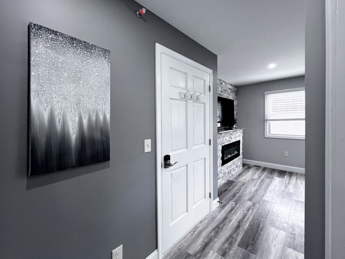 2-Zimmer-Wohnung mit 1 Badezimmer gegenüber dem Fisch- und Wildclub und Sportplätzen. In der Nähe der Main Street, von Freizeitwegen und Veranstaltungsorten. Zu den Annehmlichkeiten gehören WLAN, Amazon FireTV (Filme, Fernsehen usw. über Amazon Prime, Hulu, Disney und verwandte Apps) im Wohnzimmer und den 2 Schlafzimmern sowie Spiele, Bücher, eine voll ausgestattete Küche, eine Waschküche, eine Veranda, ein privater Parkplatz, eine Müllabfuhr und ein privater Außenterrassenbereich mit Gasgrill, Gasfeuerstelle, Gesprächsset und Picknicktisch.