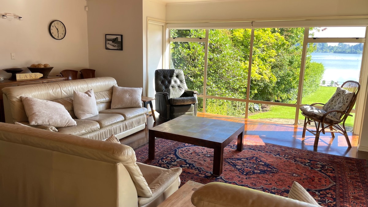 Das Wytchwood Lake House liegt nur wenige Schritte vom Seeufer entfernt – folge einfach dem breiten Gartenweg hinunter zum Wasser. Es ist gemütlich eingerichtet, mit einem warmen, gemütlichen Kamin im Winter und Türen, die sich sowohl zur vorderen als auch zur hinteren Terrasse im Sommer öffnen. Die geschützte hintere Terrasse mit Blick auf den Garten eignet sich hervorragend für Mahlzeiten im Freien, während die weitläufige vordere Terrasse mit Blick auf den Rotorua-See dir tolle Sonnenuntergänge und einen nächtlichen Blick auf die Lichter der Stadt bietet. Die Unterkunft liegt eine 20-minütige Fahrt von der Stadt entfernt, die über eine gemeinsame Auffahrt erreichbar ist.
