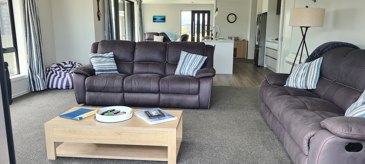Welcome to our home which has been designed to take in the views of the lake and mountains and has indoor/outdoor flow Our home has spacious open plan living with large kitchen, 4 bedrooms, ensuite, bathroom & separate toilet so plenty of room for eveyone to relax We are located 5 minutes walk to the lake and lakefront walking track, 5 minutes drive to the town centre or if you feel like a stroll it's about a 15 minute walk.