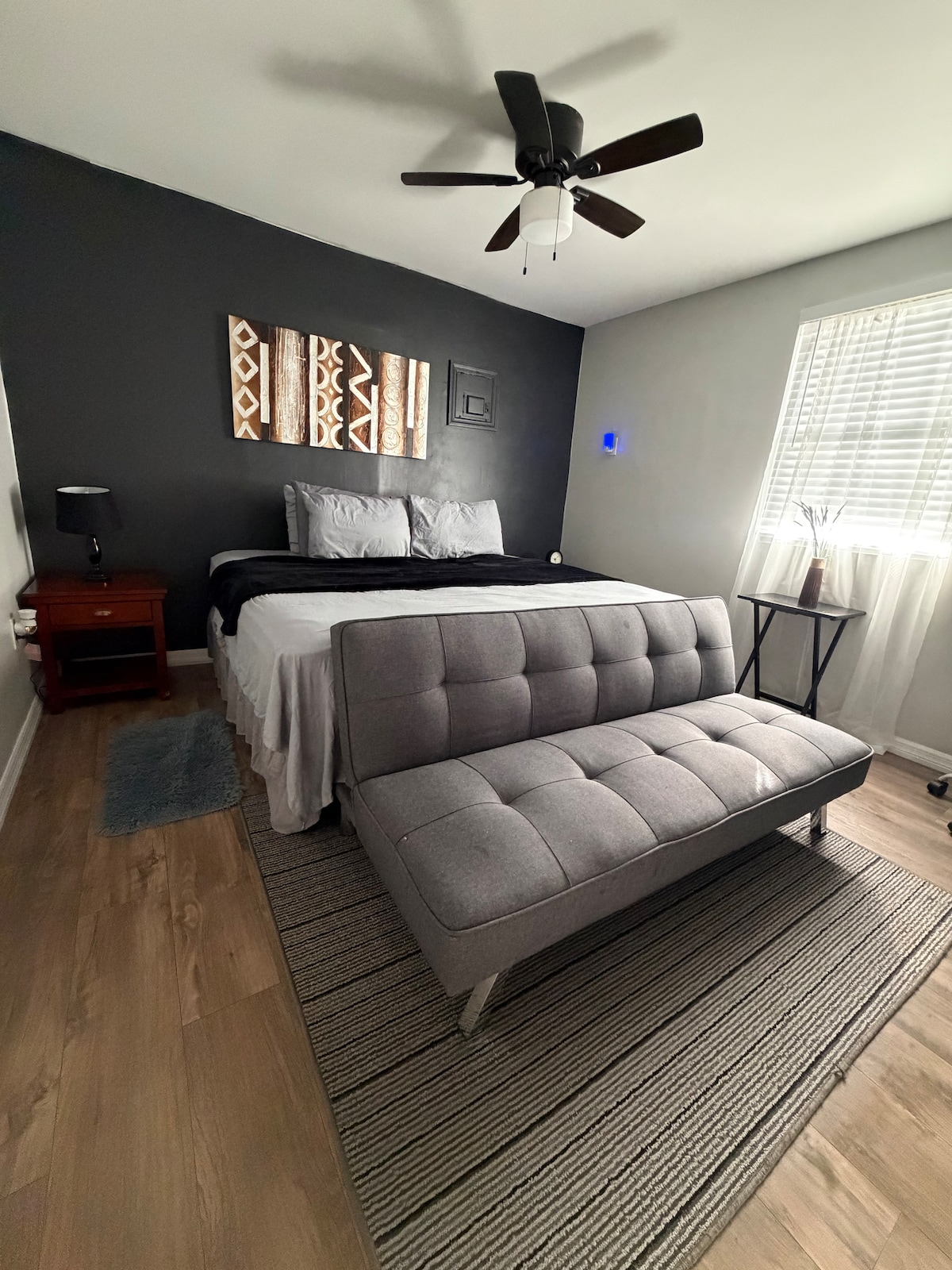 Die Wohnung ist an das Haupthaus angebaut, hat aber einen eigenen Eingang. Das Studio bietet Gästen absolute Privatsphäre Die Küche ist komplett ausgestattet, einschließlich Töpfen, Pfannen, Ofen, Kühlschrank und vielem mehr. Ein großes Bett wird bereitgestellt. Das Badezimmer verfügt über Handtücher, Seife, Shampoo, Conditioner und einen Haartrockner Zu den weiteren Annehmlichkeiten gehören ein Fernseher mit Netflix, WLAN, Alexa, eine Fensterklimaanlage, Parkplätze direkt vor dem Haus und eine ruhige Nachbarschaft. Bei Fragen oder Bedenken können Sie mich kontaktieren.