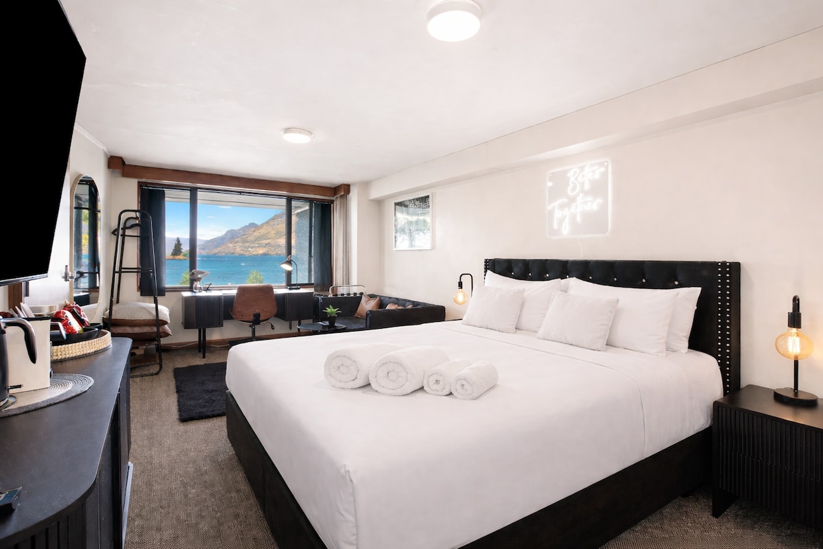 Unsere moderne Wohnung befindet sich mitten im Zentrum von Queenstown, nur 3 Gehminuten von Bars, Restaurants, Einkaufsmöglichkeiten und dem Trubel entfernt. Hier gibt es keine Hügel zu erklimmen! Direkt am See gelegen, mit atemberaubendem Blick auf die Remarkables und die Aktivitäten auf dem See, hast du alles vor der Haustür! Strand & Grill auf der anderen Straßenseite, Spielplatz 100 m entfernt & Bushaltestellen. Die Wohnung ist ebenerdig und komplett für einen angenehmen Aufenthalt im Winter und Sommer ausgestattet. Unterkunft: Queensize-Bett PLUS ein Einzelbett & Queensize-Bett ODER 3 Einzelbetten