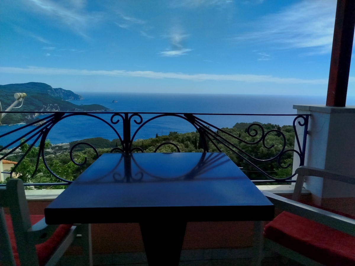 Balkone in jedem Zimmer mit Blick auf das Ionische Meer und Panoramablick auf Paleokastritsa. Mit absolutem Respekt vor deiner Privatsphäre wirst du dich in diesem geräumigen und einzigartigen Raum mit dem herrlichen Blick auf diese berühmte und malerische Gegend sehr wohl fühlen. Wir bieten große und geräumige private Parkplätze in unserem eigenen Bereich. Ideale Lage für Touren, sowie die byzantinische Festung Angelokastro. Sehr einfacher Zugang zum nahegelegenen Paleokastritsa mit das blau-grüne Wasser und die herrlichen Buchten und Strände