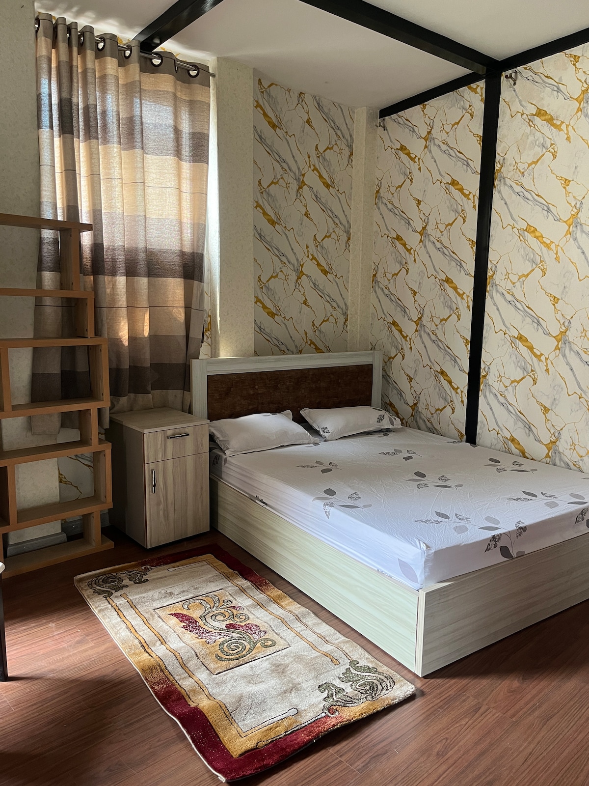 This modern, fully furnished studio is perfect for couples or solo travelers seeking an authentic stay in historic Patan. Located on the main street, it’s a short walk to Patan Durbar Square, Krishna Temple (5 min), Labim Mall (7 min), and Pulchowk UN Office (15 min). Being in a lively central area, it’s best suited for guests who enjoy a vibrant atmosphere rather than complete quiet. We offer 15% weekly and 30% monthly discounts. Ask us about stays longer than 3 months.