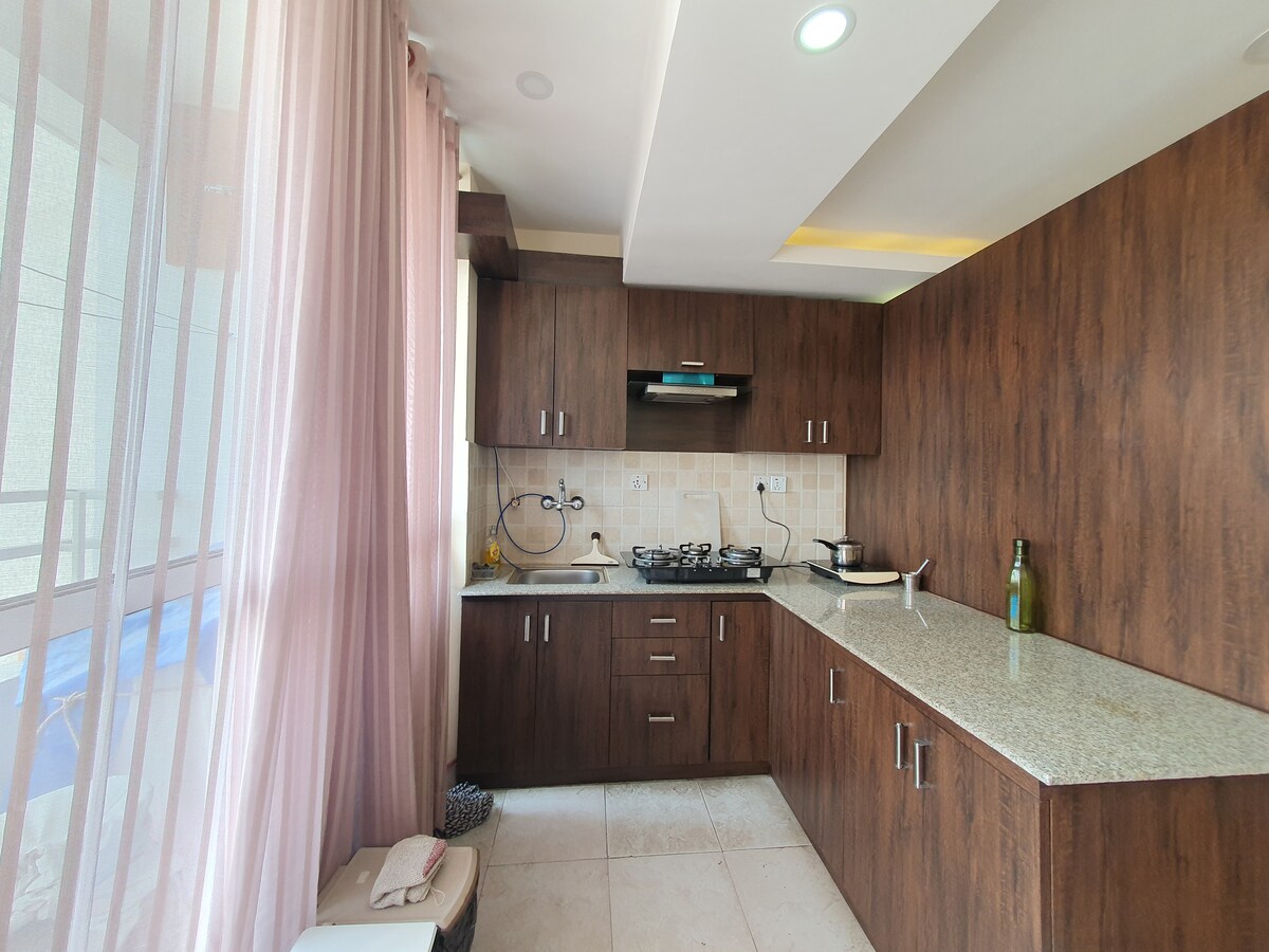 Entspannen Sie sich mit atemberaubendem Bergblick und Natur nur wenige Minuten von KTM entfernt - Perfektes Zuhause weg von zu Hause Genießen Sie von der Terrasse aus einen atemberaubenden Blick auf die Berge, exklusiven Zugang zu Fitnessraum und Sauna und die nahegelegenen Wanderwege des Phulchoki Hill. Die Wohnung ist ideal gelegen, nur 10 Minuten von Phulchoki Hill, Kunda & Naudhara Mandir und St. Xavier's School entfernt. Mit öffentlichen Verkehrsmitteln, Banken, Geldautomaten und Supermärkten in der Nähe erlebst du während deines Aufenthalts die perfekte Mischung aus Natur, Komfort und Bequemlichkeit.