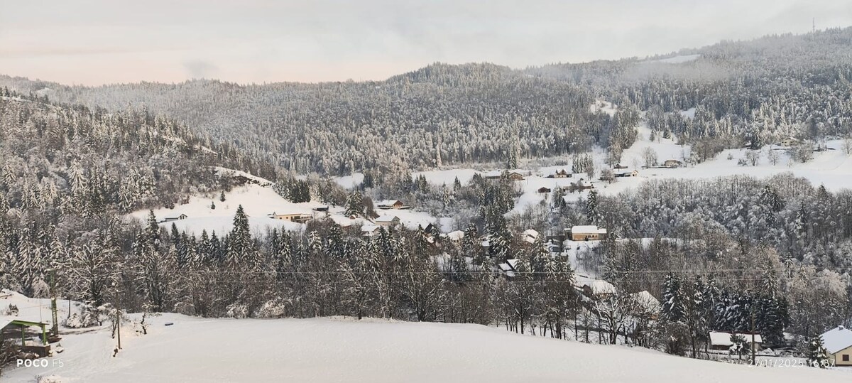 WICHTIG: * Reinigung nicht inbegriffen (80 € sind zu erwarten, wenn Sie die Reinigung nicht selbst vornehmen möchten) * Badetücher werden nicht zur Verfügung gestellt * Bettwäsche nicht enthalten! (Vermietung möglich 10 €/Einzelbett, 12 €/Doppelbett) Wohnung 8 Personen 88 m2, im Erdgeschoss eines typischen Bauernhofes im Haut-Jura. Atemberaubende Aussicht auf die umliegende Natur von der Terrasse aus. Nur wenige Schritte vom Dorfzentrum, Schneeschuhwanderwegen und Langlaufloipen entfernt.