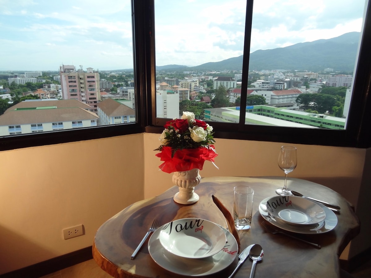 Unser Hotel liegt günstig an der Changkat Road, im Herzen von Chiang Mai, neben dem Shangri-La Hotel. Vom Balkon aus können Sie den hinteren Garten des Shangri-La Hotels sehen. Das Zimmer verfügt über einen 52-Zoll-LCD-TV, High-Speed-WLAN, einen Kühlschrank, eine Mikrowelle, eine Kaffeemaschine, einen Toaster, einen Wasserkocher, Geschirr und wesentliche Annehmlichkeiten wie ein elektrisches Bügeleisen und Bügelbrett sowie einen Haartrockner. Im 16. Stock gibt es ein kostenloses Fitnessstudio.Sauna und Infinity-Pool mit kostenlosem WLAN, 17. Etage ist Dachgarten Diese brandneue, komfortable, 30 m ² große Wohnung mit einem Schlafzimmer im Zentrum von Chiang Mai eignet sich für Singles, Paare oder kleine Familien und bietet alles, was du für deinen Aufenthalt in Chiang Mai benötigst.