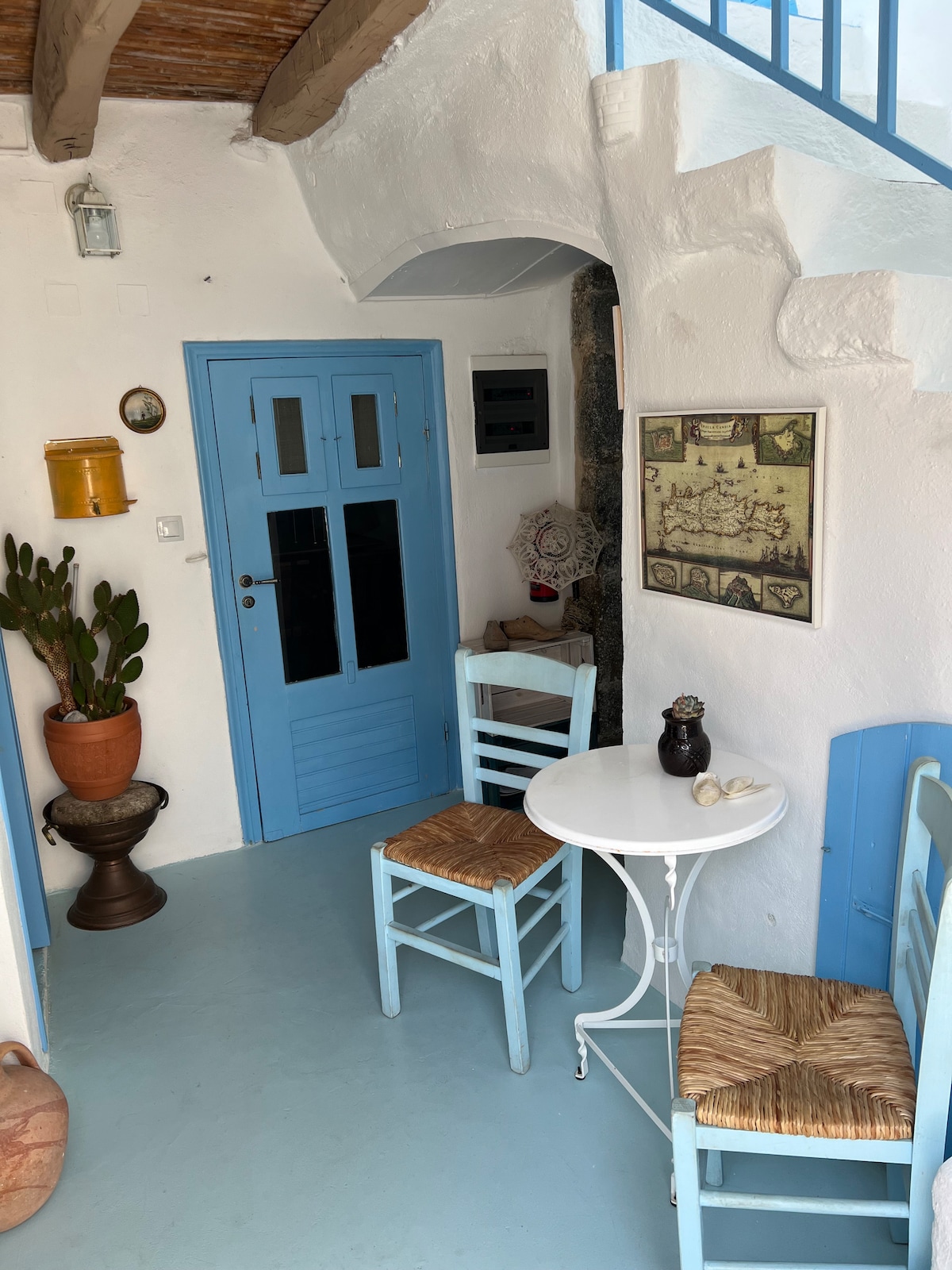 Umgeben von Olivenbäumen und mit einem atemberaubenden Panoramablick wird dich dieses solarbetriebene Haus immer wieder überraschen! Küche und Wohnzimmer sind nicht durch eine Wand getrennt und dies schafft eine offene und komfortable Umgebung. Wir bauen unser Essen auf biologische Weise an und wir haben 8 Hühner und 2 Ziegen, die uns jeden Tag mit frischer Milch und Eiern versorgen. Verschwende also nicht deine Zeit in überfüllten Resorts und langweiligen Wohnungen. Komm zu uns nach Hause, lerne unsere charmanten Ziegen kennen und erlebe etwas Neues!