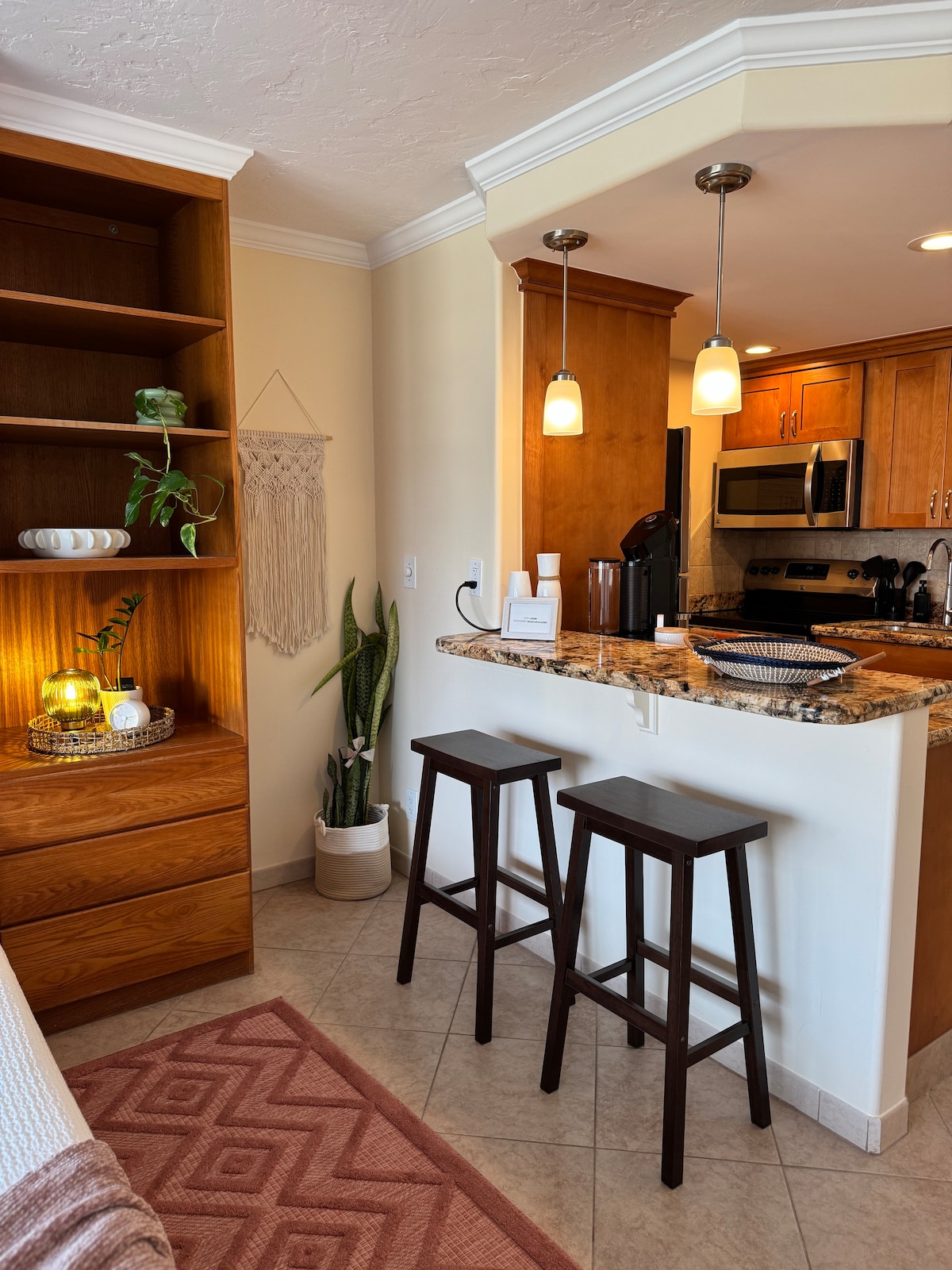Top floor corner unit at Kepuhi Beach Resort, on the special island of Molokai....in between Maui and Oahu! Vaulted open ceilings, spacious and airy. Completely remodeled and freshly outfitted. Close to beach and ocean-side pool, views of Kaiaka Rock, ocean surf, vivid sunsets. Fully equipped kitchen, luxurious King sized bed. Fast wireless , 40” SmartTV. Perfect setting to unplug, hike or bike the red dirt trails, explore beaches, and experience Molokai fully.
