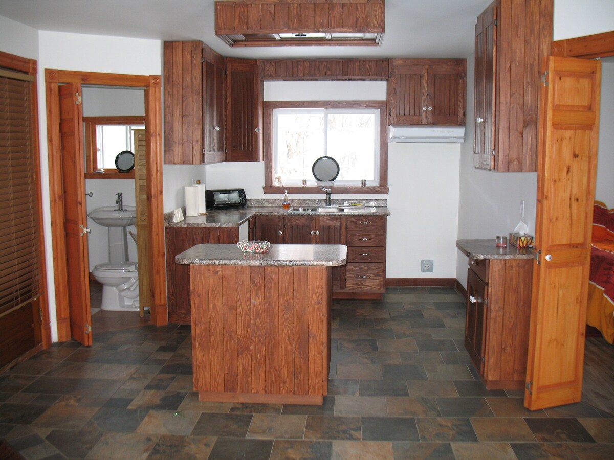 Spa FERMÉ pour la saison. Piscine FERMÉE pour la saison. Chaleureux petit studio au coeur du vieux village de Mont-Tremblant, tout près du lac Mercier et de sa plage publique, et à moins de 10 minutes en voiture du Mont Tremblant et de son village piétonnier. Un endroit parfait pour relaxer dans le calme et profiter des attraits naturels des Laurentides! Idéal pour 2 personnes. Wi-fi.