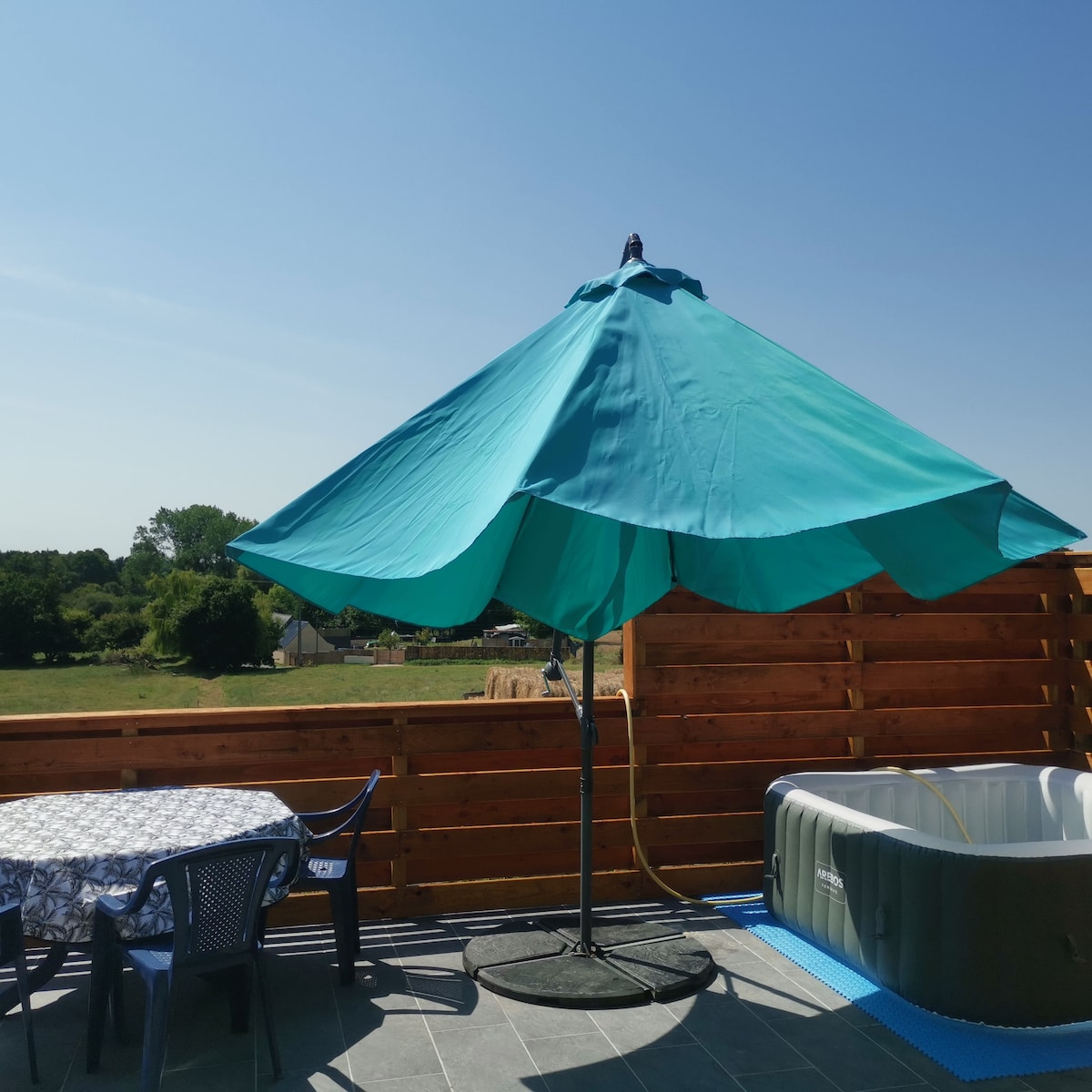 Cet hébergement est paisible, en pleine campagne. Il surplombe la nature grâce à sa grande terrasse et sa cuisine d'été (plancha ...) et bien avec son spa pour la période estivale ( de mai à septembre chauffer à 38 degrés ). Idéal pour 1 à 4 personnes. Il possède une grande cuisine équipée, un grand séjour , deux chambres, une salle de bain et un jardin privatif ainsi qu'un parking privé. Location de draps pour 15 € par lit.