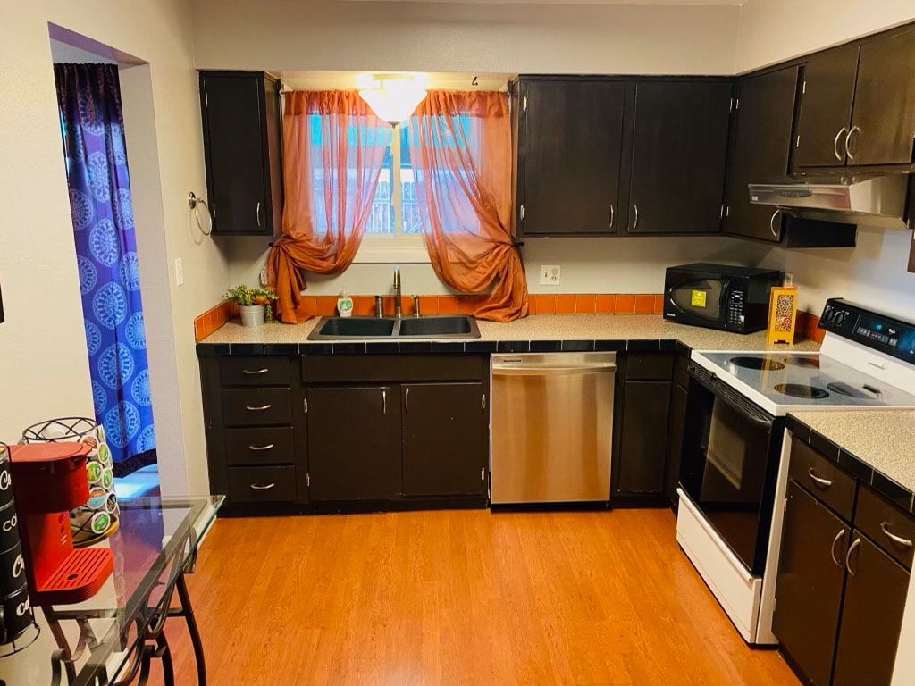 Das künstlerische Landiego ist nicht schick, aber Junge ist es cool. Dieses 3 Schlafzimmer befindet sich auf der Südseite von Lander hinter einigen einheimischen Chokecherry-Bäumen in einem umgebauten 1963 doppelten Detroiter Deluxe, nur wenige Blocks vom City Park und einem halben Block vom Golfplatz und dem Lander Community Center entfernt. Die meisten Kunstwerke stammen von lokalen Lander-Künstlern und viele Stücke spiegeln Landers einzigartigen Charme wider. Dieses Haus verfügt über Internet, aber keinen Fernseher. Genieße diese schöne Küche, die riesige Badewanne und das Insiderauge in der Kunstwelt von Lander!