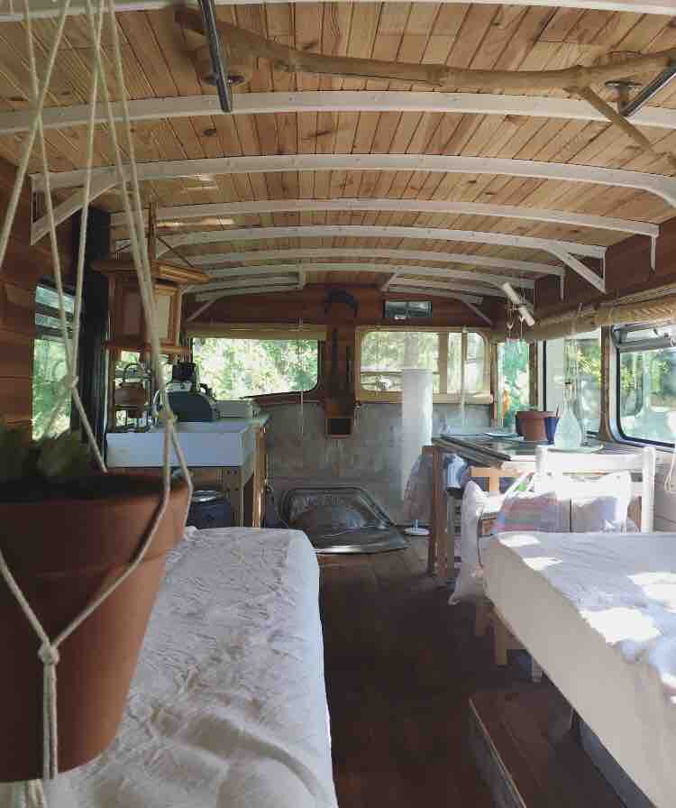 Unser Bus ist mit einem Poêle à granulé beheizt, der schöne Bus ist ein renoviertes Leyland Bus de Collection 1960. Design mit Öko-Material und Detail, es gibt ein Doppelbett im zweiten Stock, 360 Blick auf Wald und offenen Himmel mit Glas, um die Sterne der Landes in der Nacht zu sehen, der gleiche Blick von Ihrem Bad auf Anzug, im ersten Stock gibt es Wohnbereich, Esszimmer und Küche, innerhalb unserer schönen Öko-Farm gibt es unseren Shop, medizinischen Garten und Gemüseplantage. Sie können Massage- und Yoga-Behandlungen organisieren.