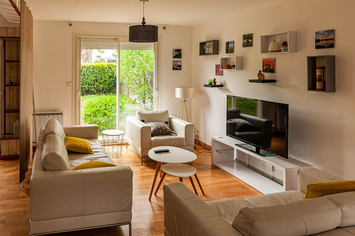 Stadthaus mit Garten, ruhige Lage in der Nähe des Stadtzentrums, der Hallen von Merville und des Einkaufszentrums La Base. Die Strände von Larmor-Plage sind weniger als 10 Autominuten entfernt. Ideal für Ihre Geschäftsreisen oder Familienaufenthalte. Parkplätze vor dem Haus kostenfrei. Bettwäsche wird zur Verfügung gestellt. Qualitativ hochwertige Ausstattung. Sie müssen nur noch Ihre Sachen abstellen und genießen!