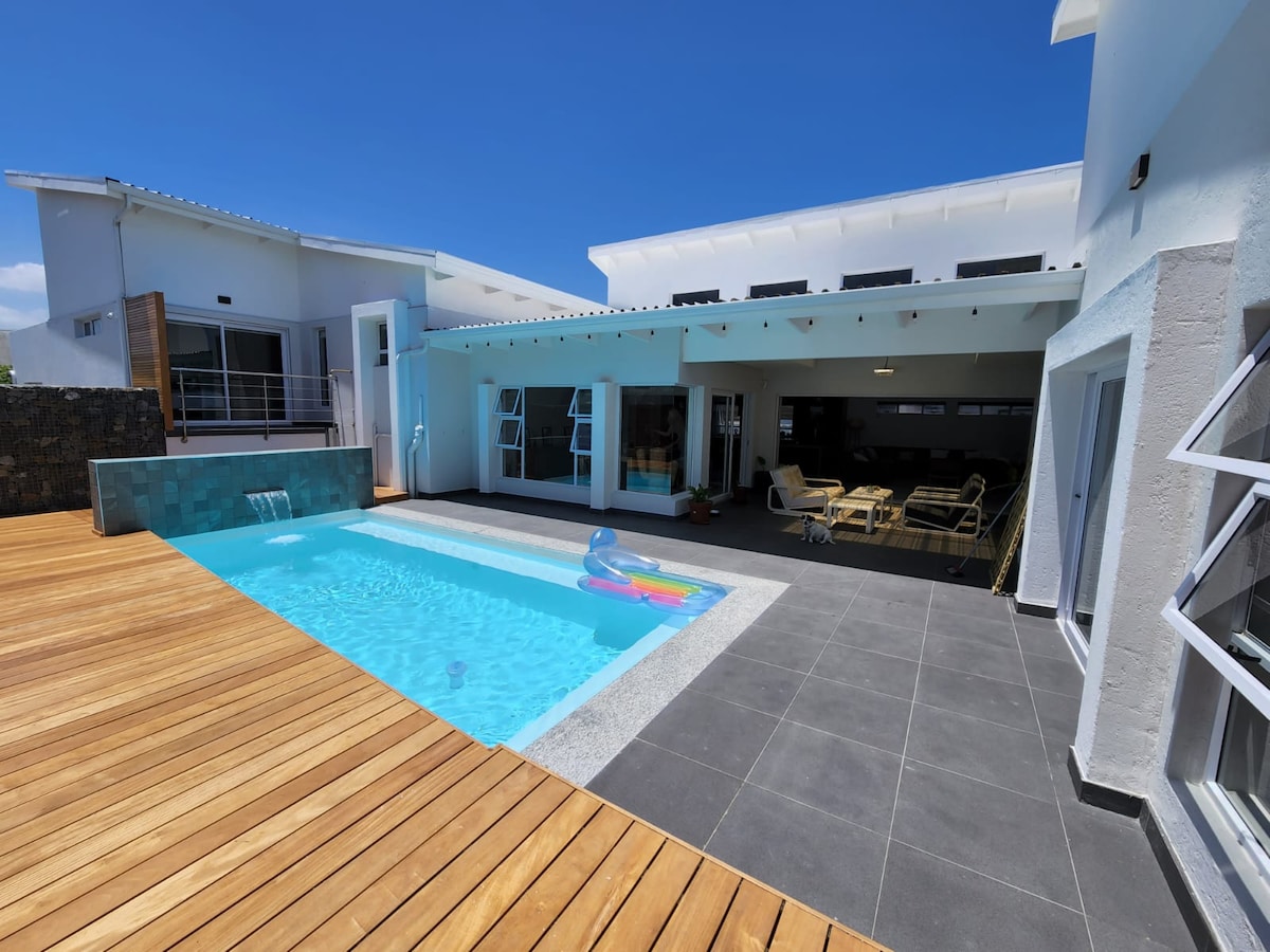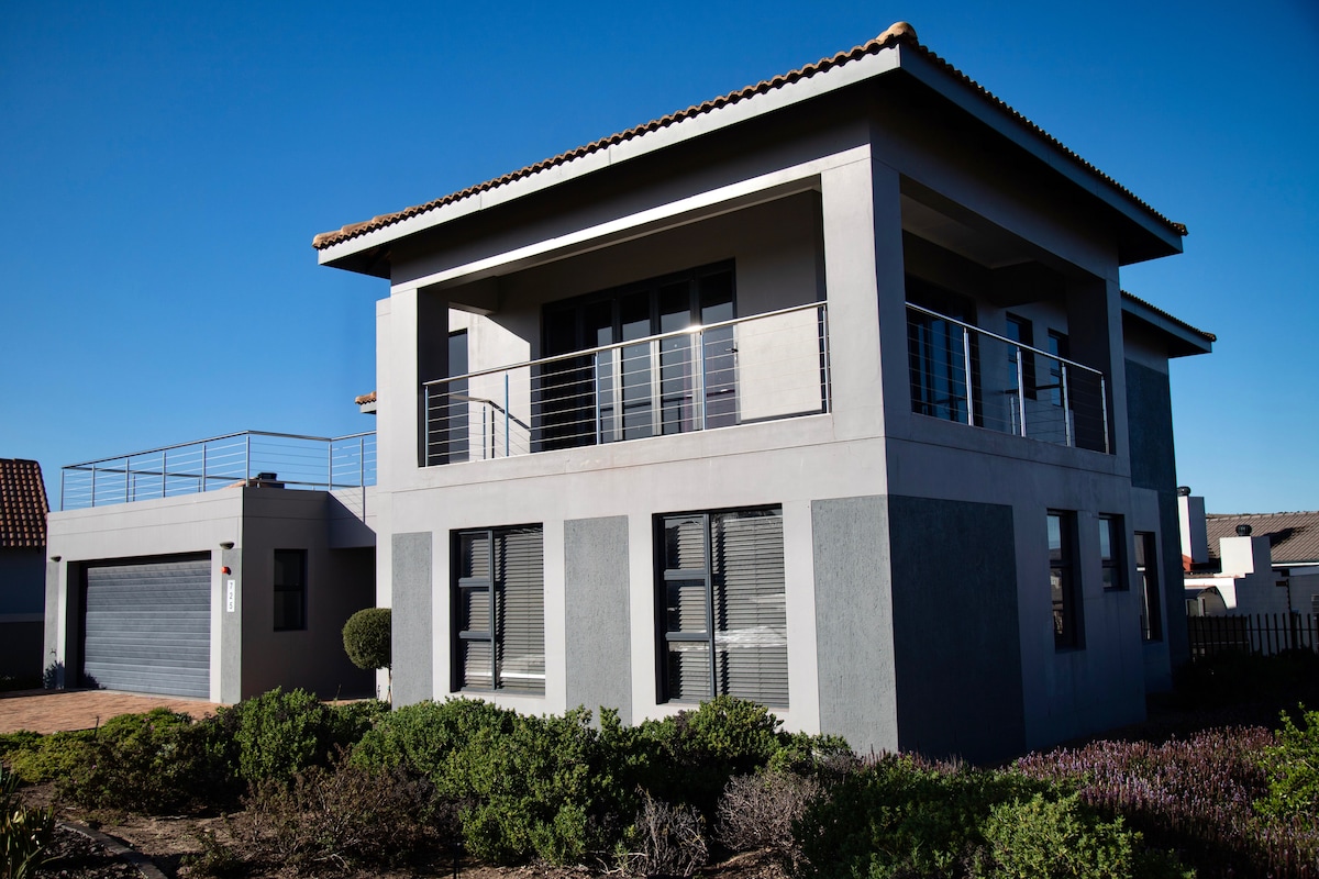 Gemütliches Haus, umgeben von Wildtieren und unglaublichen Sonnenuntergängen, auf dem prestigeträchtigen 450 Hektar großen 18-Loch-Golfplatz. Springböcke, Blessböcke und Flamingos umgeben das Haus. Genieße 80 km Radwege, Wanderwege, einen Pool, Minigolf und Restaurants sorgenfrei mit Sicherheitsdienst rund um die Uhr auf dem Anwesen. Eine kurze Fahrt vom Strand und den Geschäften entfernt. Ideal für Remote-Arbeit mit 300 Mbit/s Glasfaser-Internet und komfortablen Arbeitsplätzen. Viele Spielparks für Familien und Pumptrack für Abenteuerlustige.